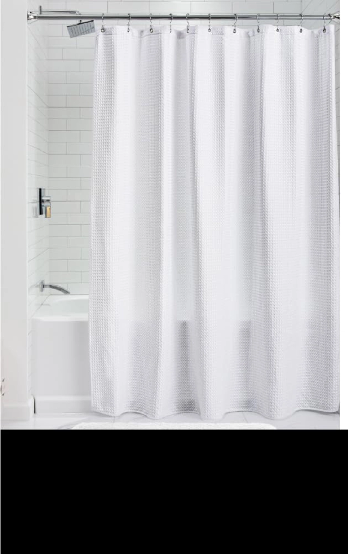 Classic waffle-weave shower curtain with weighted fabric for a sleek hotel look. Rust-resistant, wrinkle-free, machine washable, and durable for everyday use.