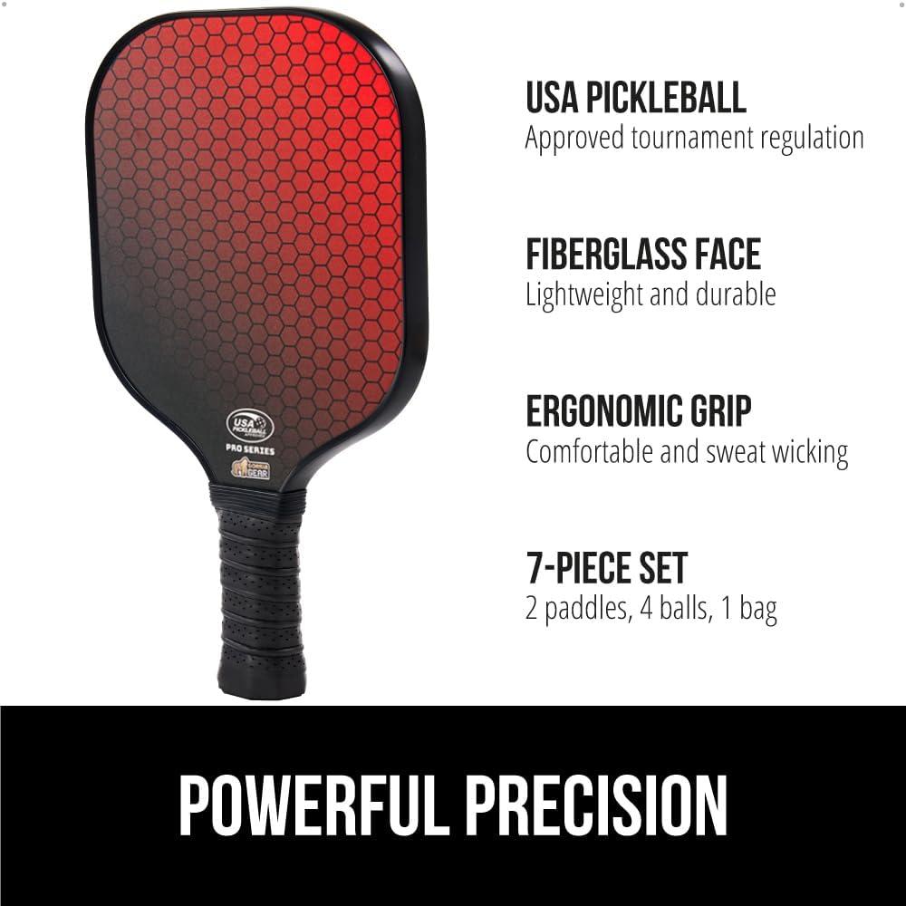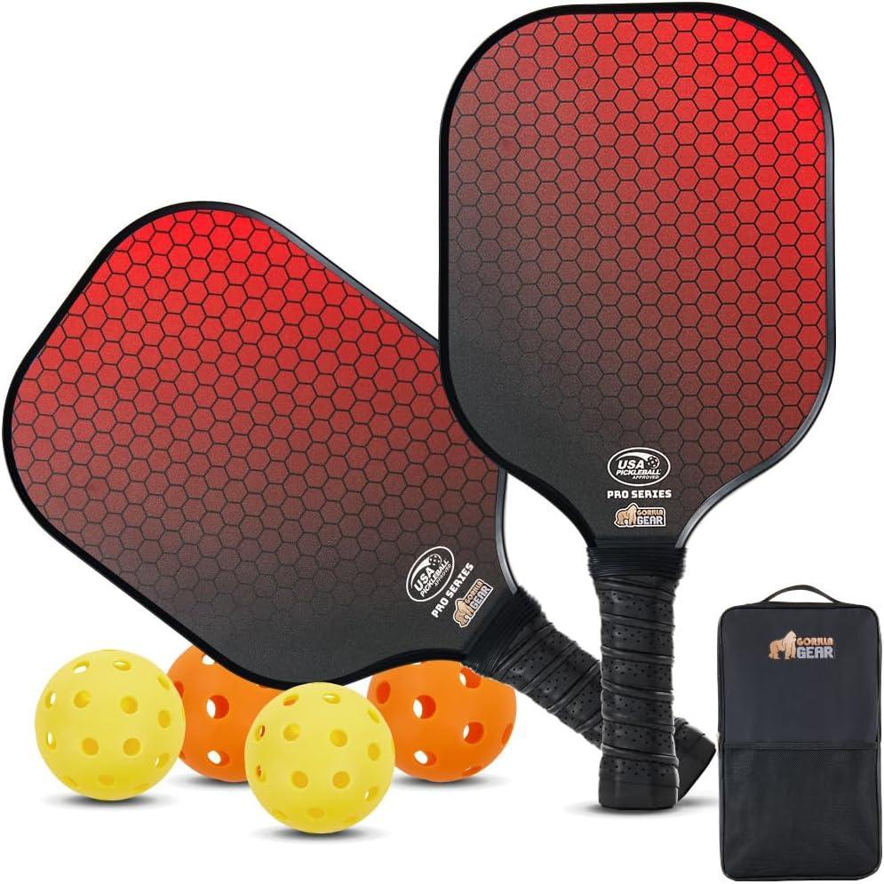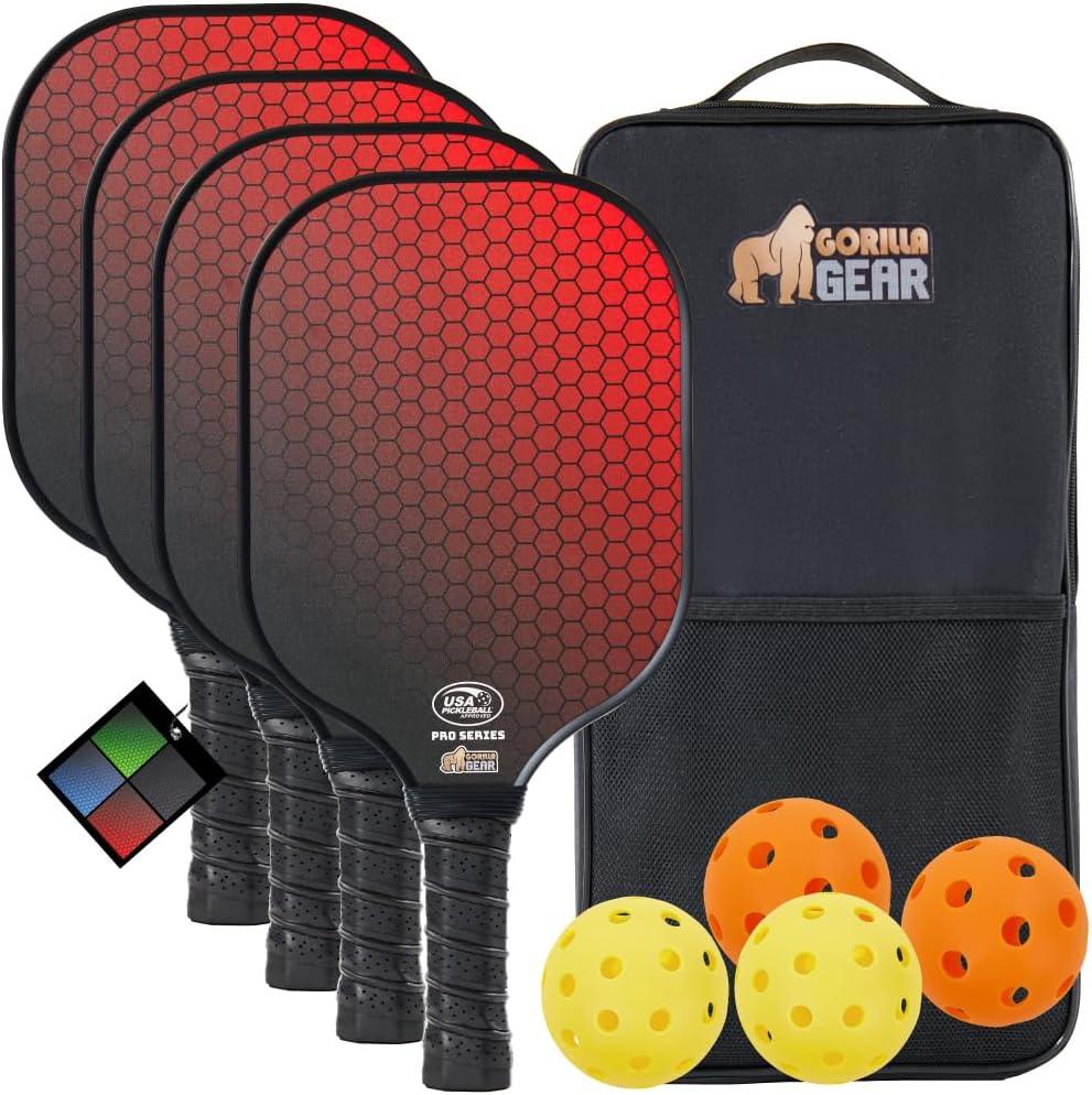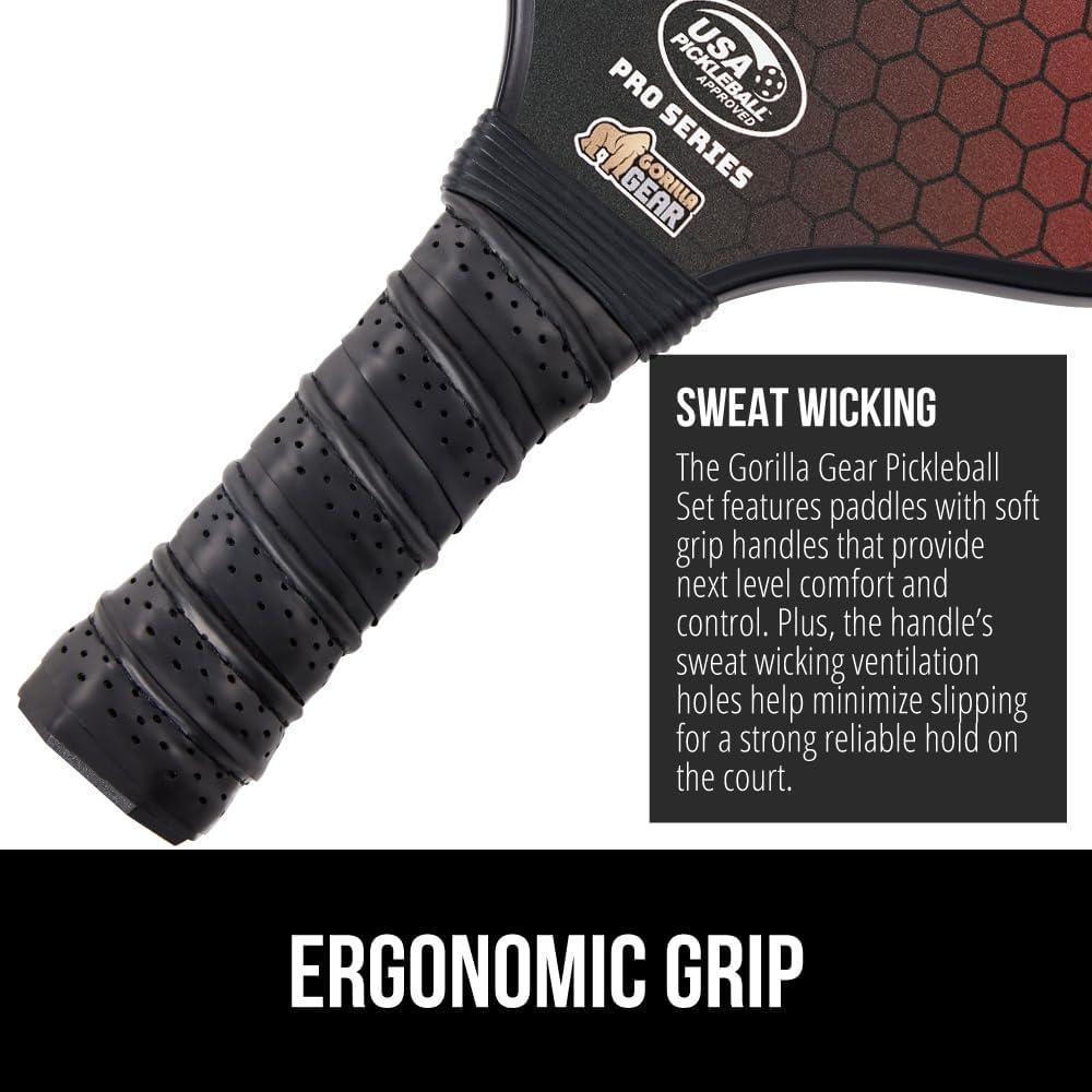 Increase your competitive edge with the Gorilla Gear Pickleball Set. The set is perfect for players at all experience levels and is even great for beginners. The paddles work for right or left-handed players. The set includes 4 powerful paddles, 2 indoor balls, 2 outdoor balls, and carrying case.