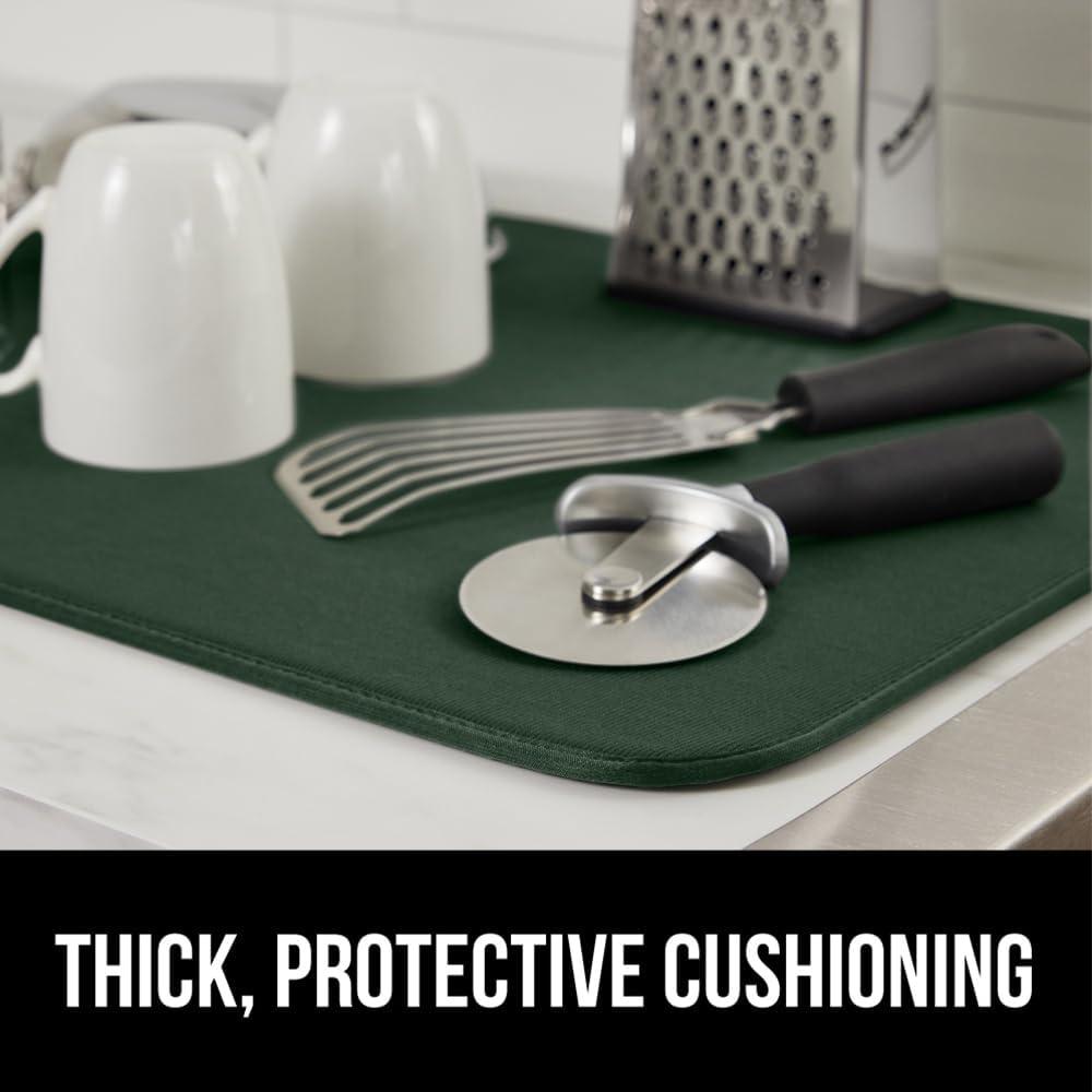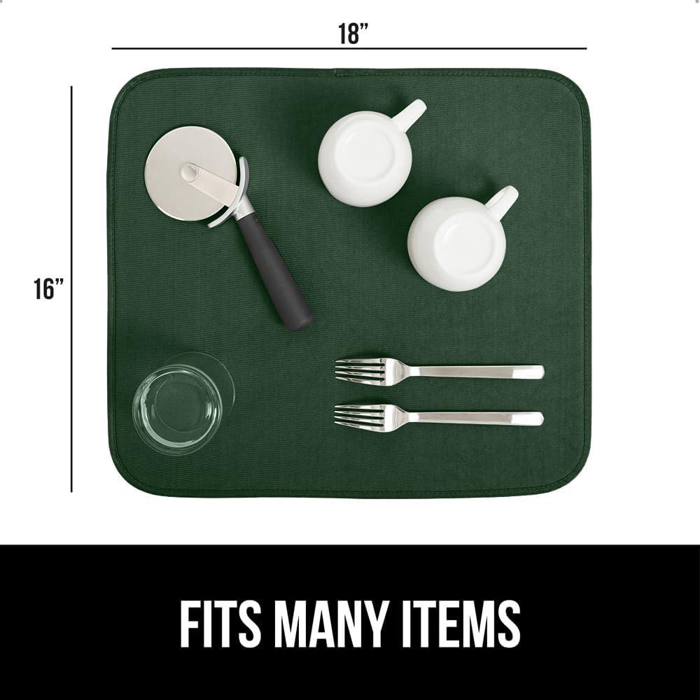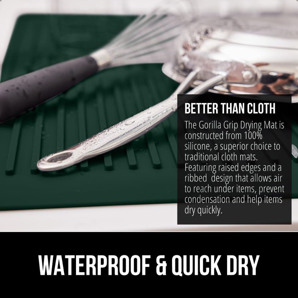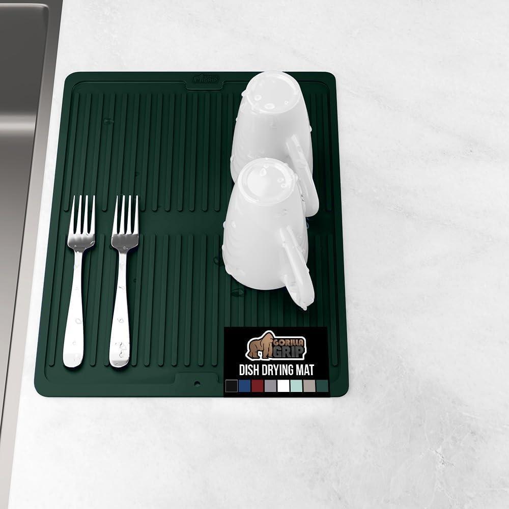 GORILLA GRIP 100% BPA-Free Patented Silicone Dish Drying Mat for Kitchen Counter, 18×16 Inch, Water Catching Ribbed Design, Easy Clean Waterproof Sink Liner, Heat Resistant, Fits Under Rack, White(Hunter Green)