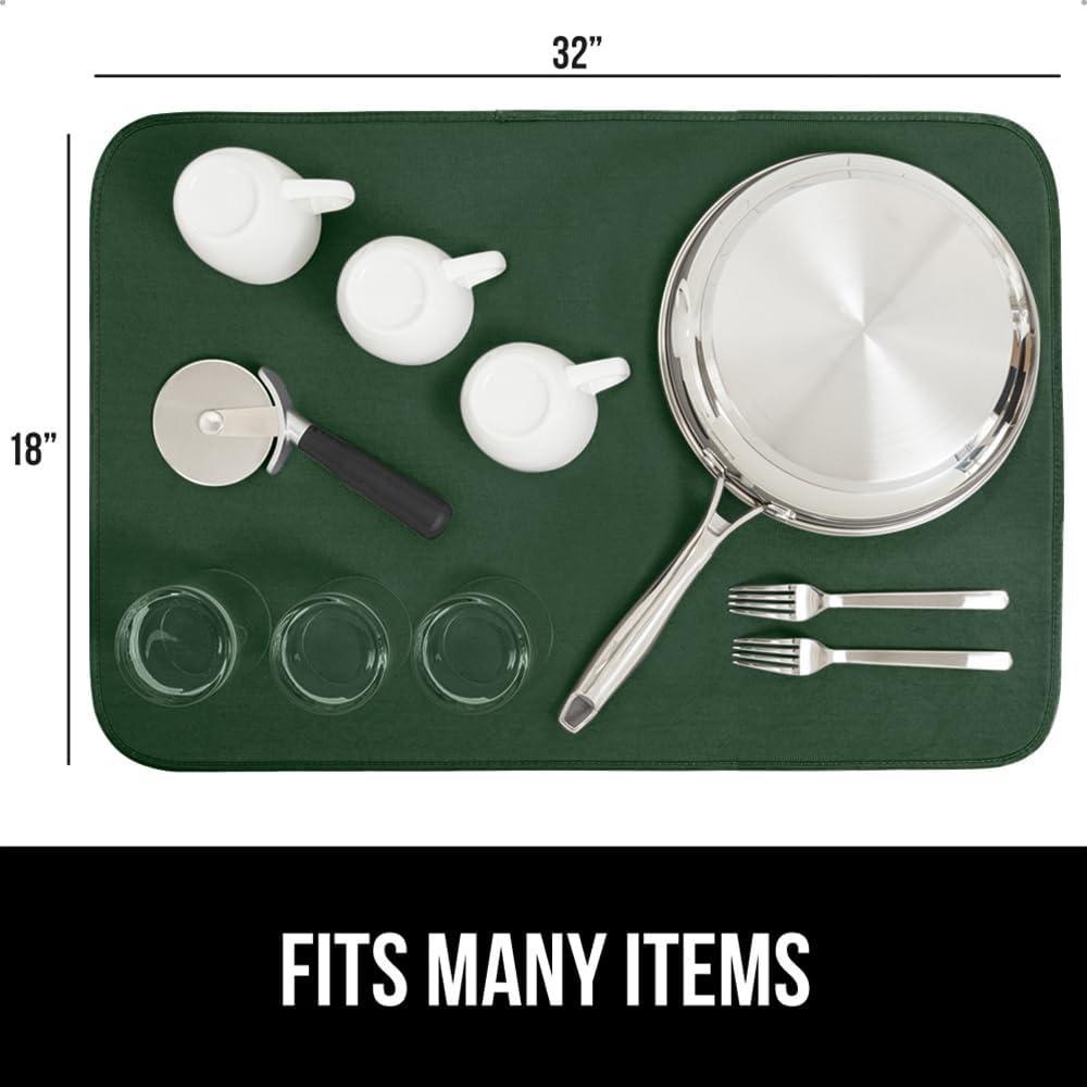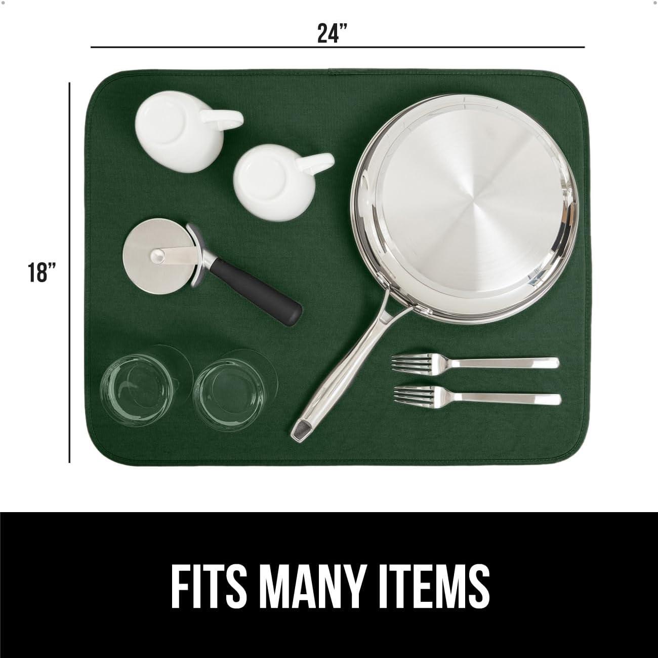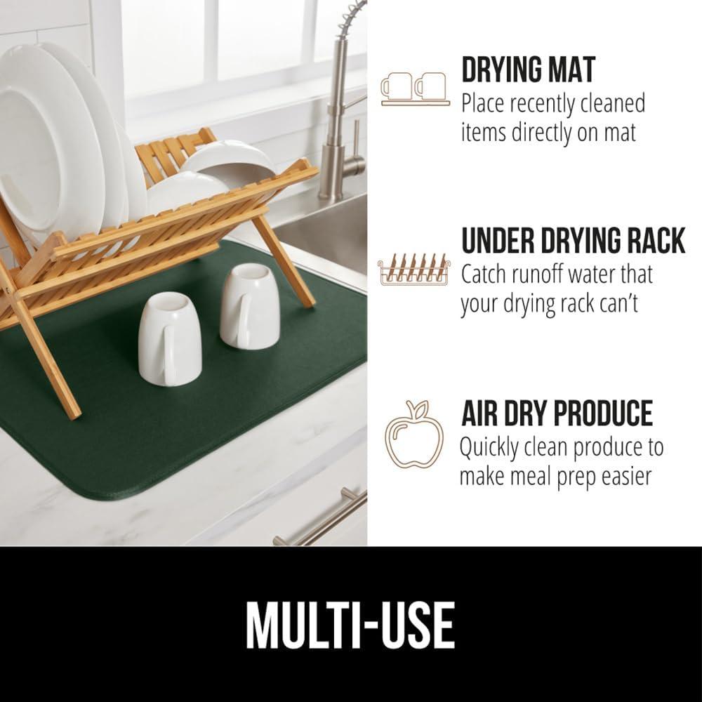 GORILLA GRIP 100% BPA-Free Patented Silicone Dish Drying Mat for Kitchen Counter, 18×16 Inch, Water Catching Ribbed Design, Easy Clean Waterproof Sink Liner, Heat Resistant, Fits Under Rack, White(Hunter Green)