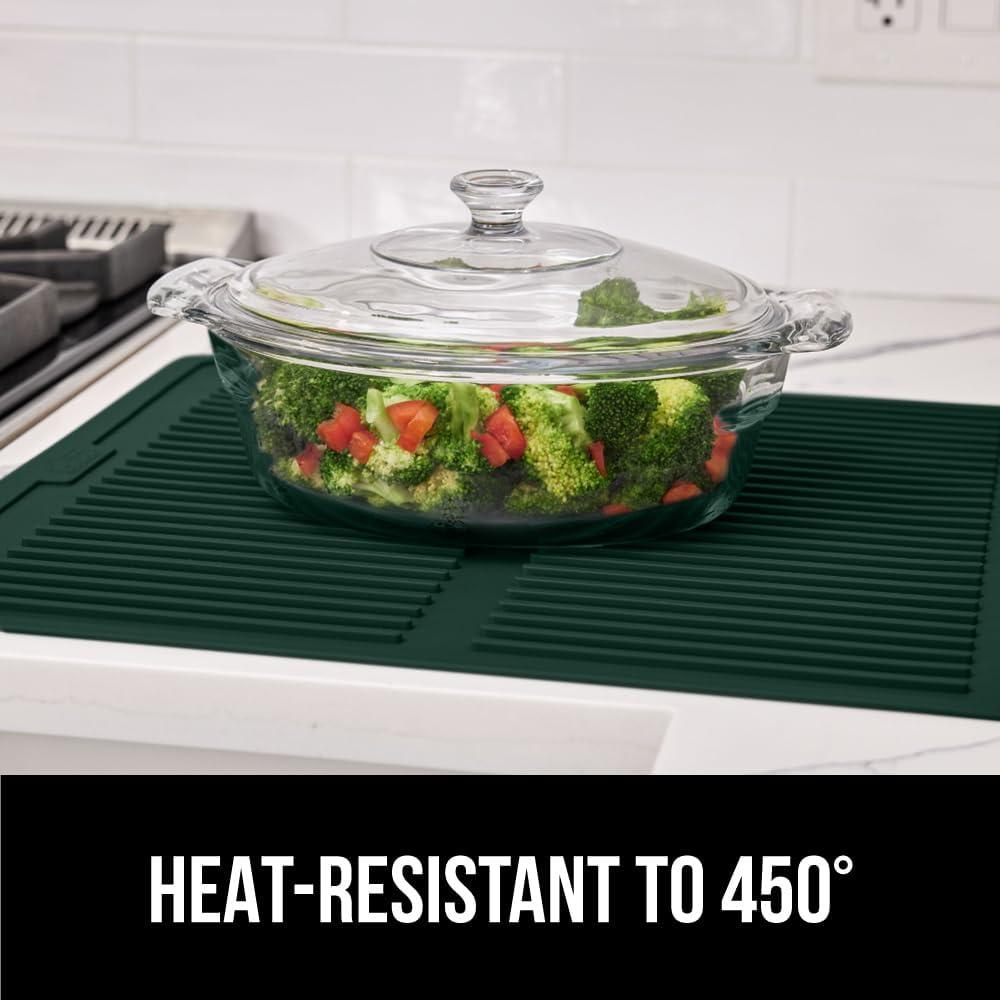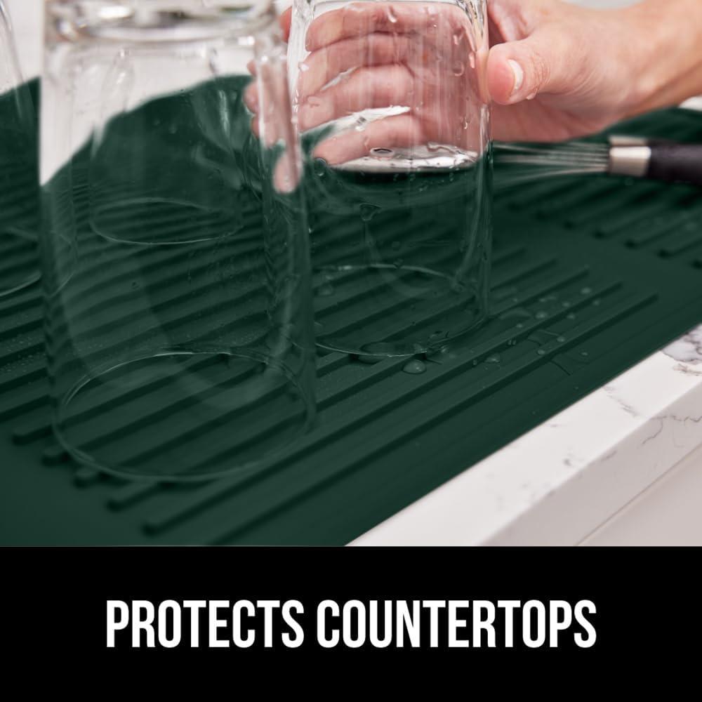 GORILLA GRIP 100% BPA-Free Patented Silicone Dish Drying Mat for Kitchen Counter, 18x16 Inch, Water Catching Ribbed Design, Easy Clean Waterproof Sink Liner, Heat Resistant, Fits Under Rack, White(Hunter Green)