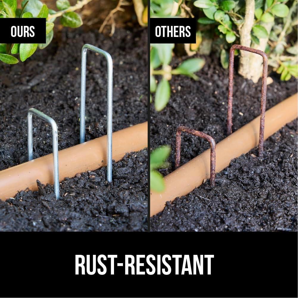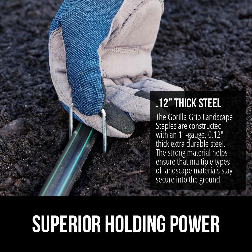 SUPERIOR HOLDING POWER WITH EXTRA STRONG STEEL: constructed with 11 gauge, .12 inch thick steel, landscape staples provide exceptional strength and stability to securely anchor landscape materials into the ground