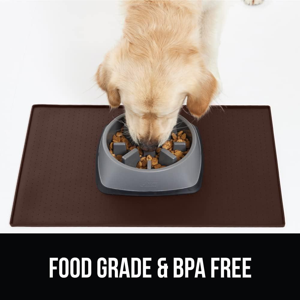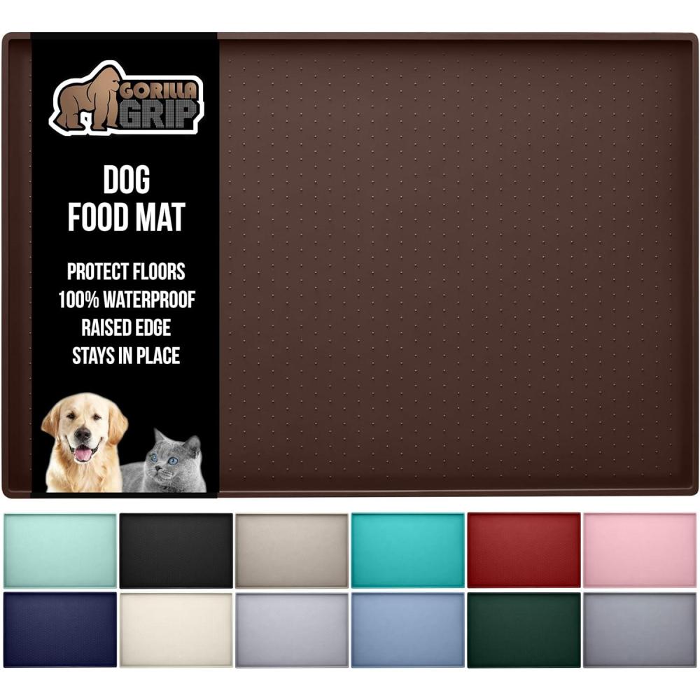 GORILLA GRIP 100% Waterproof Raised Edge BPA Free Silicone Pet Feeding Mat, Dog Cat Food Mats Contain Spills Protects Floors, Placemats for Cats and Dogs Water Bowl, Pets Accessories 18.5×11.5 Gray(Brown)