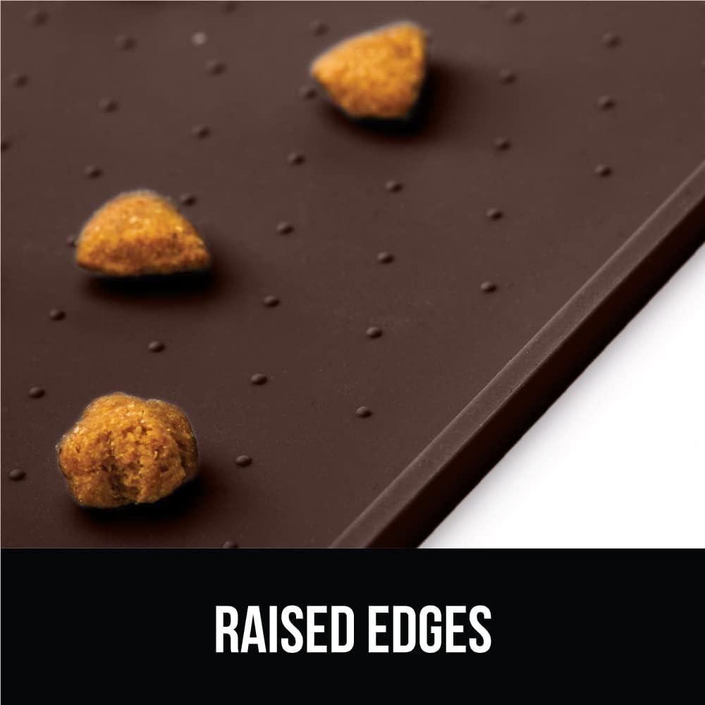 GORILLA GRIP 100% Waterproof Raised Edge BPA Free Silicone Pet Feeding Mat, Dog Cat Food Mats Contain Spills Protects Floors, Placemats for Cats and Dogs Water Bowl, Pets Accessories 18.5x11.5 Gray(Brown)