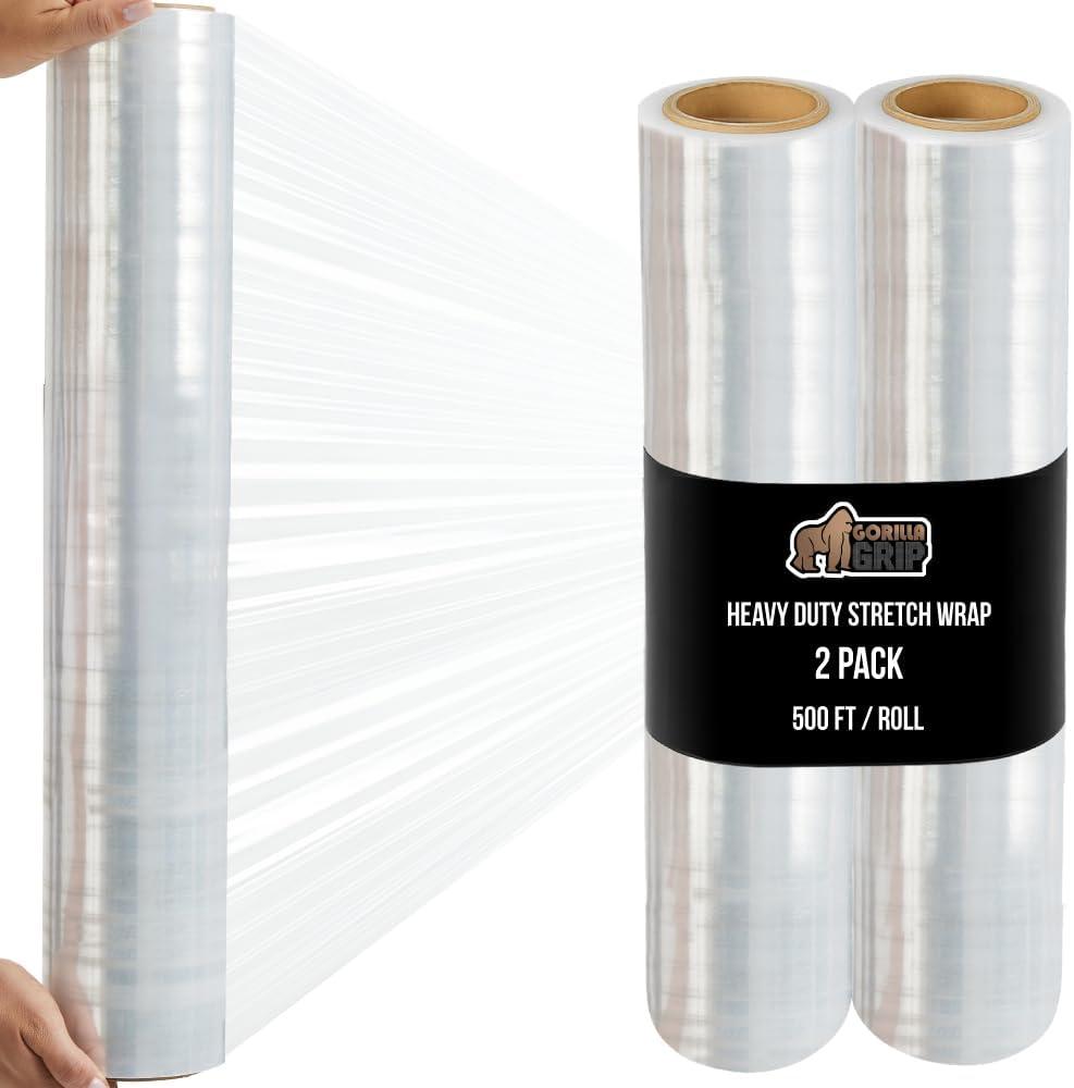 GORILLA GRIP 500% Stretch Film Heavy Duty Plastic, 1200ft Shrink Wrap Roll 17″ Puncture Resistant, Industrial Strength for Shipping, Pallet Storing, Moving, Packing Furniture Protection 1 Pack Clear(2)