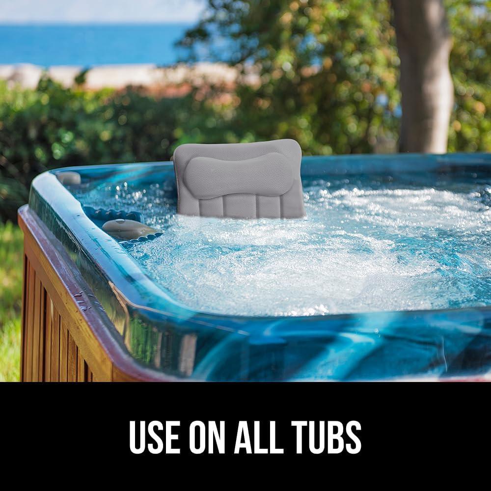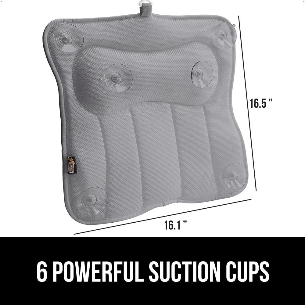 GORILLA GRIP Bath Pillow for Tub with Powerful Suction Cups, Headrest Bathtub Pillows for Neck and Back Support, Machine Washable, Bathtub Accessories for Women, Relaxing Spa Gift Essentials, White(Gray)