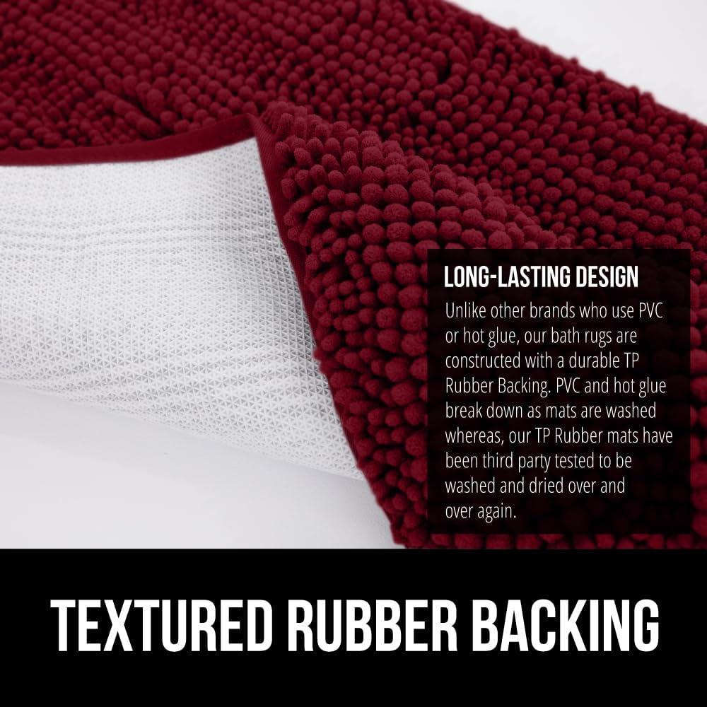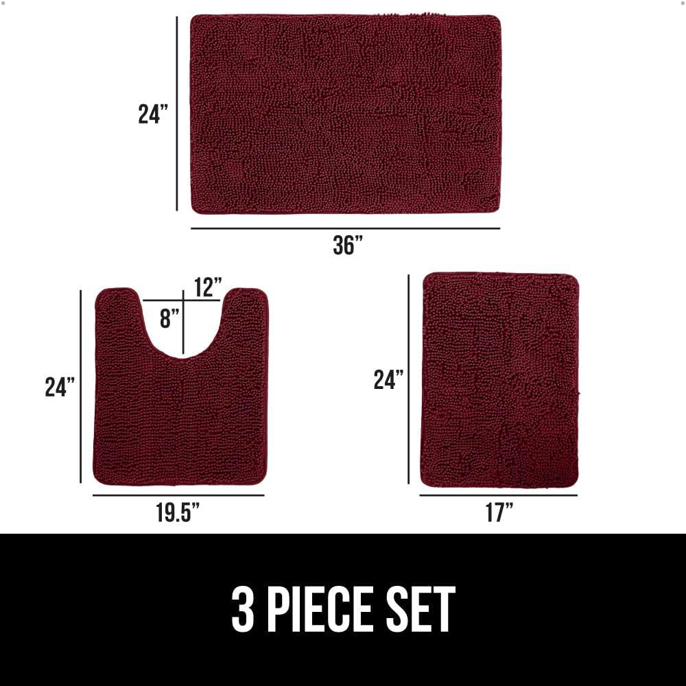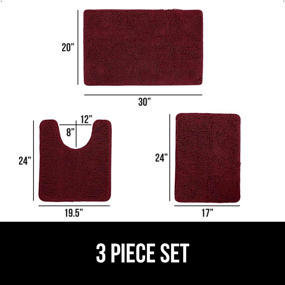 GORILLA GRIP Bathroom Rug Sets 3 Piece, Bath Mat Set and Oval Toilet Base with Rubber Backing, Plush Absorbent Shaggy Chenille Washable Mats, Includes 24x19.5, 24x17 and 30x20 Inch Rugs, Grey(Burgundy)