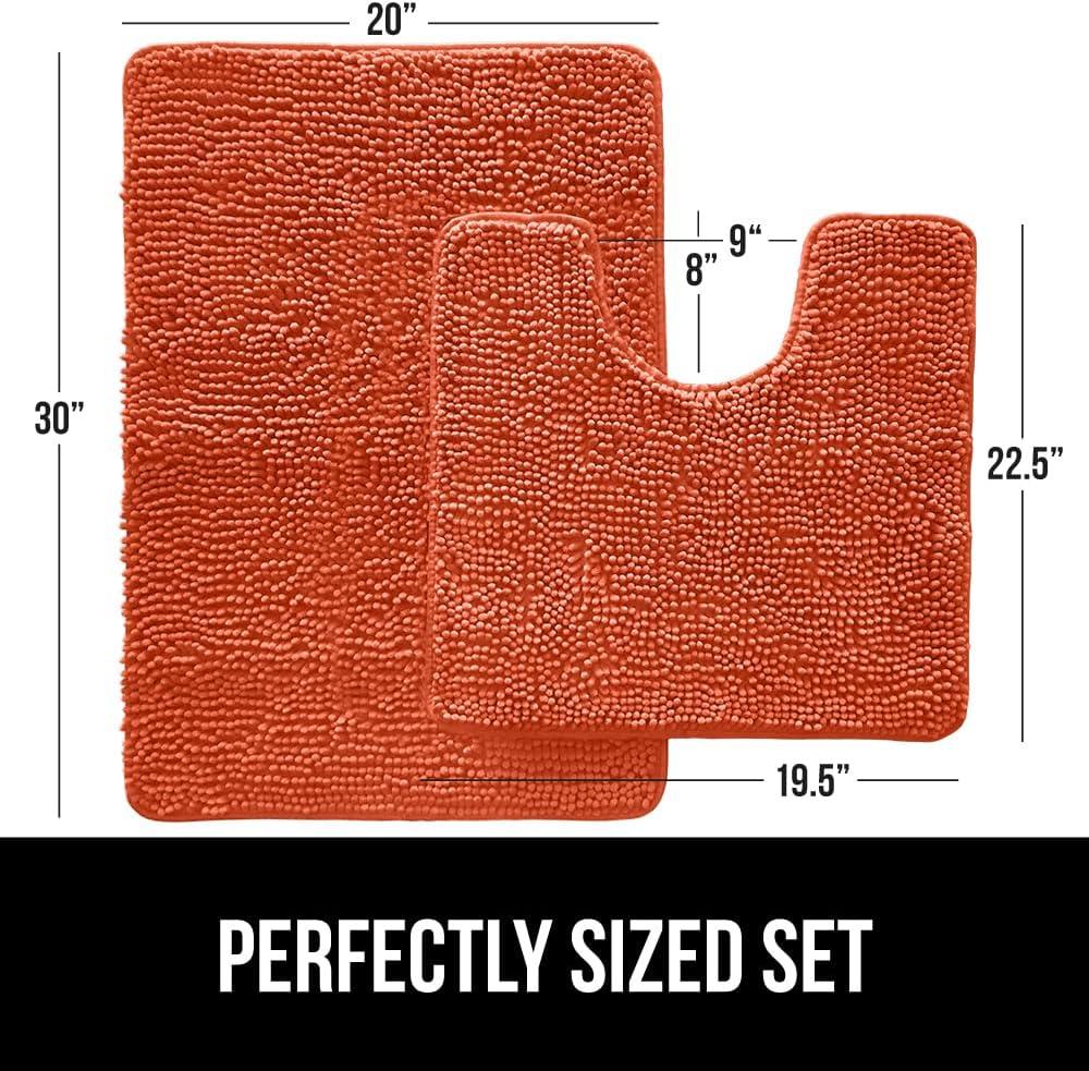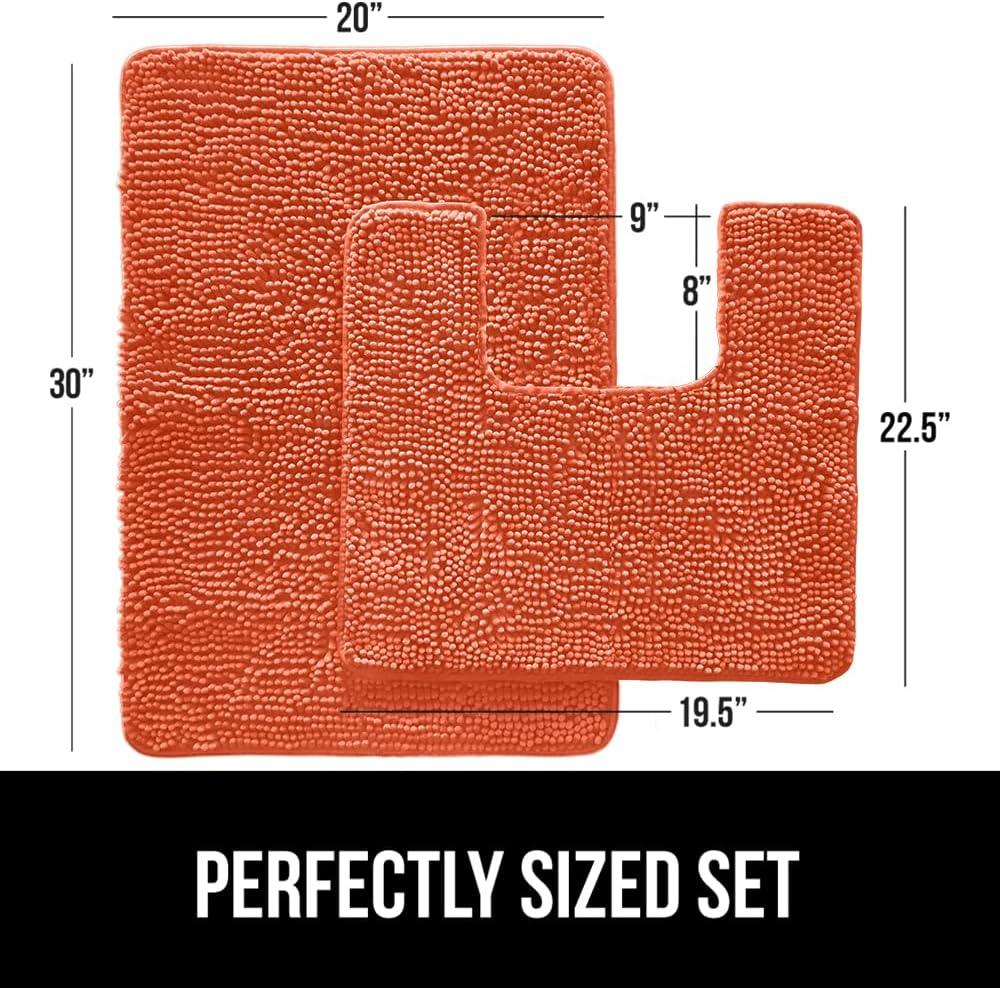 GORILLA GRIP Bathroom Rug Sets, Soft Chenille 2 Piece Area Rugs Set, Toilet Base Mat and 30x20 Carpet, Absorbent Microfiber Washable Mats Dry Quickly, Home Décor and Bath Room Accessories, Grey(Coral)