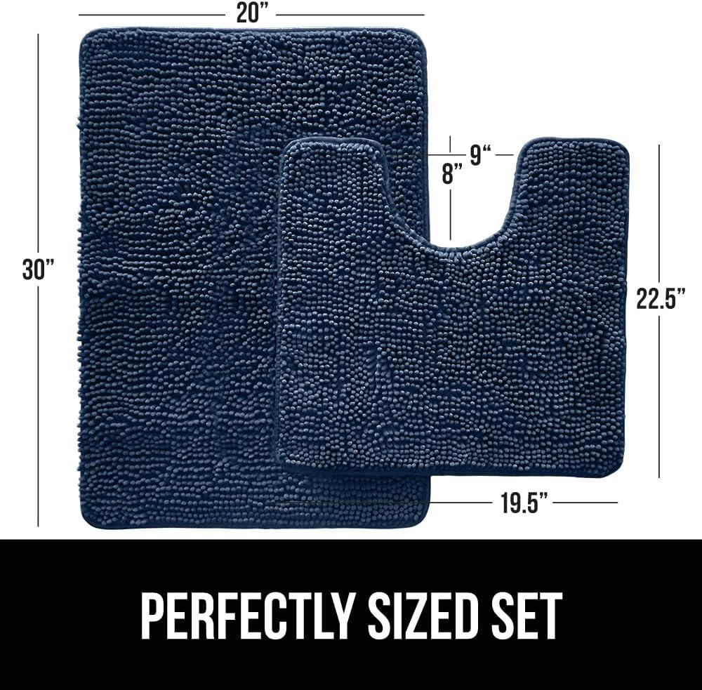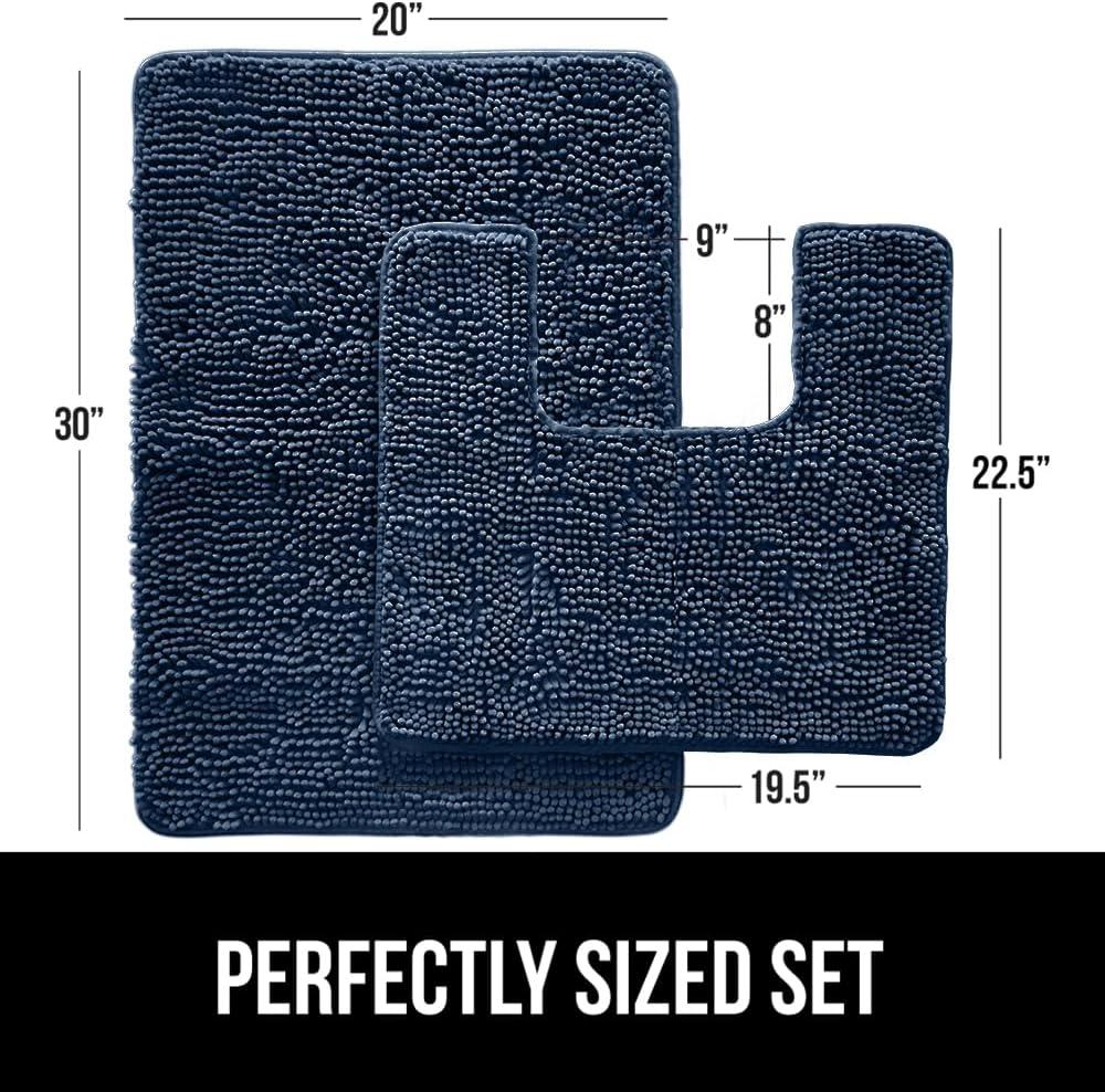 GORILLA GRIP Bathroom Rug Sets, Soft Chenille 2 Piece Area Rugs Set, Toilet Base Mat and 30x20 Carpet, Absorbent Microfiber Washable Mats Dry Quickly, Home Décor and Bath Room Accessories, Grey(Navy)