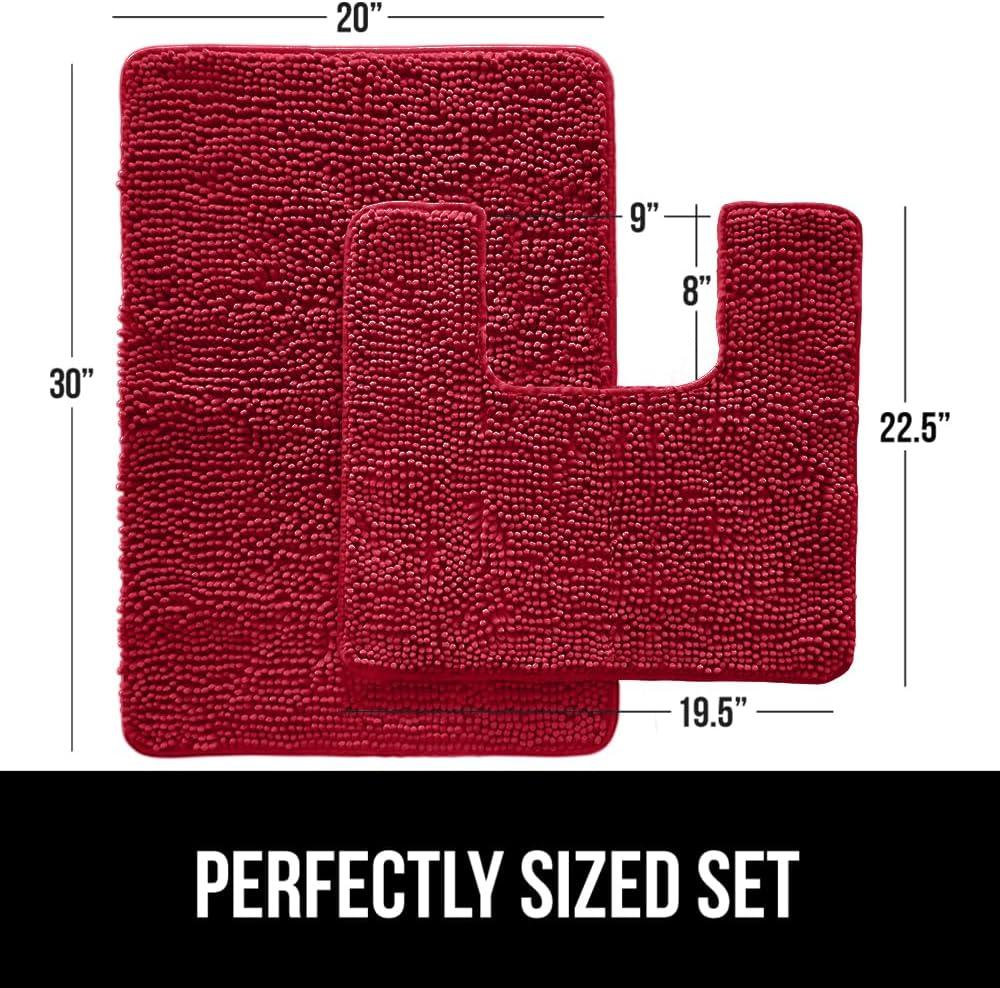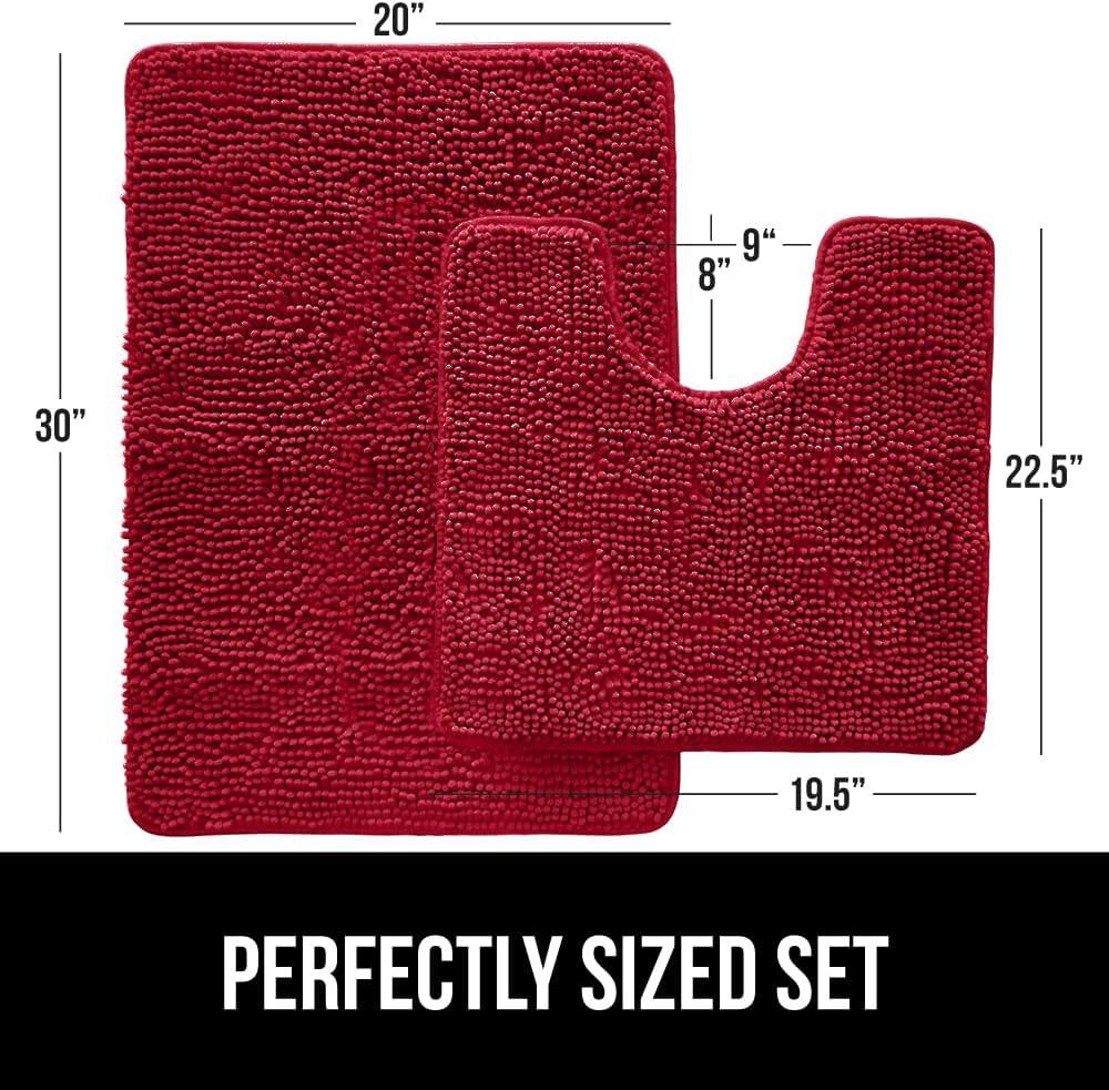 GORILLA GRIP Bathroom Rug Sets, Soft Chenille 2 Piece Area Rugs Set, Toilet Base Mat and 30x20 Carpet, Absorbent Microfiber Washable Mats Dry Quickly, Home Décor and Bath Room Accessories, Grey(Red)