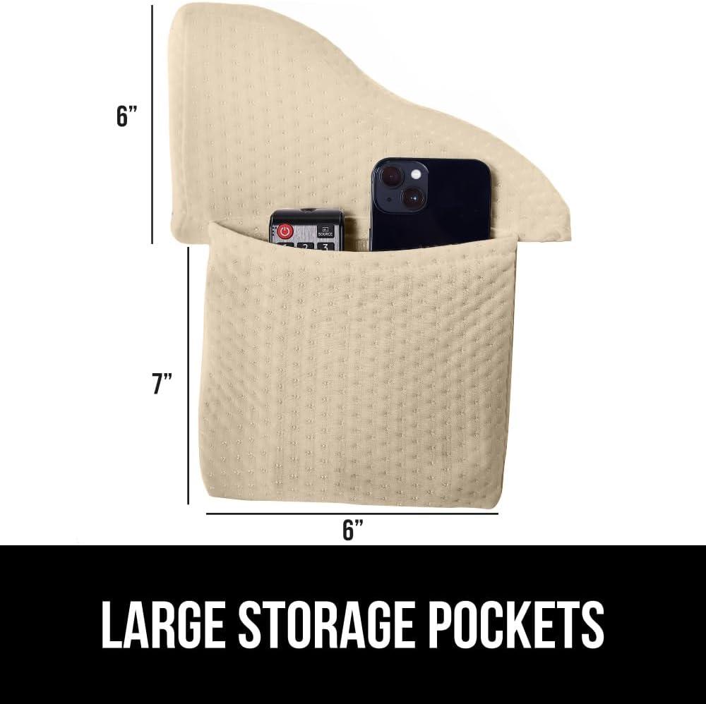 CONVENIENT, LARGE STORAGE POCKETS AND HANDLE: large storage pockets work both vertically and horizontally; conveniently keep small items such as phones, remote controls, eyeglasses and more within reach; large carrying handle makes for easy transport from room to room; pillow is 24 inches x 24 inches x 12 inches and ships rolled; please allow up to 48hrs for product to air out and fully rebound