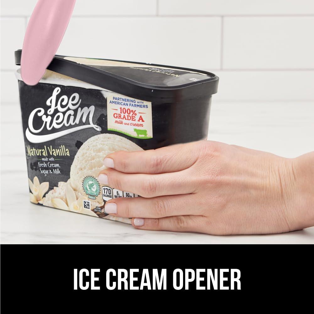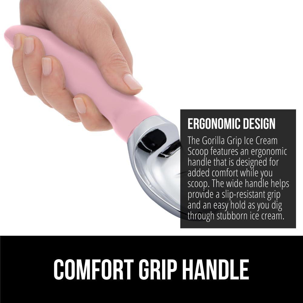 GORILLA GRIP BPA-Free Heavy Duty Ice Cream Scoop, Comfortable Ergonomic Handle, Professional Grade Scooper for Perfect Round Scoops, Spoon Frozen Hard Gelato, Sorbet, Cookie Dough, Kitchen Tool, Black(Pink)