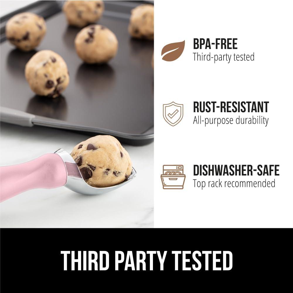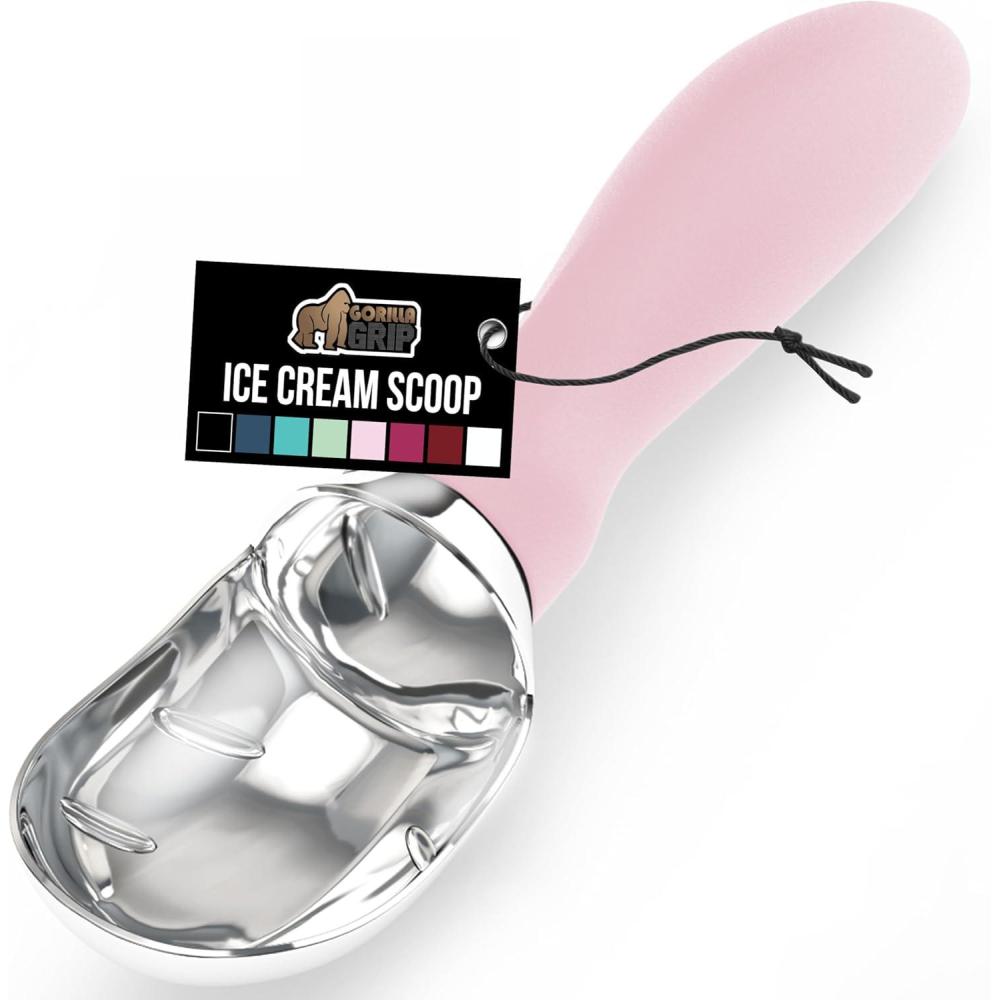 imageGORILLA GRIP BPAFree Heavy Duty Ice Cream Scoop Comfortable Ergonomic Handle Professional Grade Scooper for Perfect Round Scoops Spoon Frozen Hard Gelato Sorbet Cookie Dough Kitchen Tool BlackPink