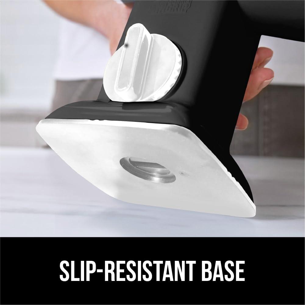 INNOVATIVE DESIGN AND POWERFUL GRIP BASE: powerful suction cup base provides a strong, slip-resistant grip on counters; activate the suction cup with a custom easy turn dial that locks the device in place for total stability during use