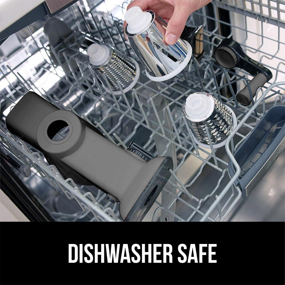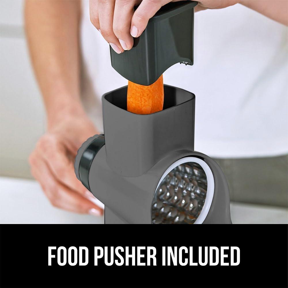POWERFULLY SLICE, GRATE, AND SHRED: the Gorilla Grip Rotary Grater helps save time on meal prep; food pusher keeps hands safe from blades; rotate the handle to slice and shred faster than by hand; spend less time in the kitchen, more time enjoying your meals