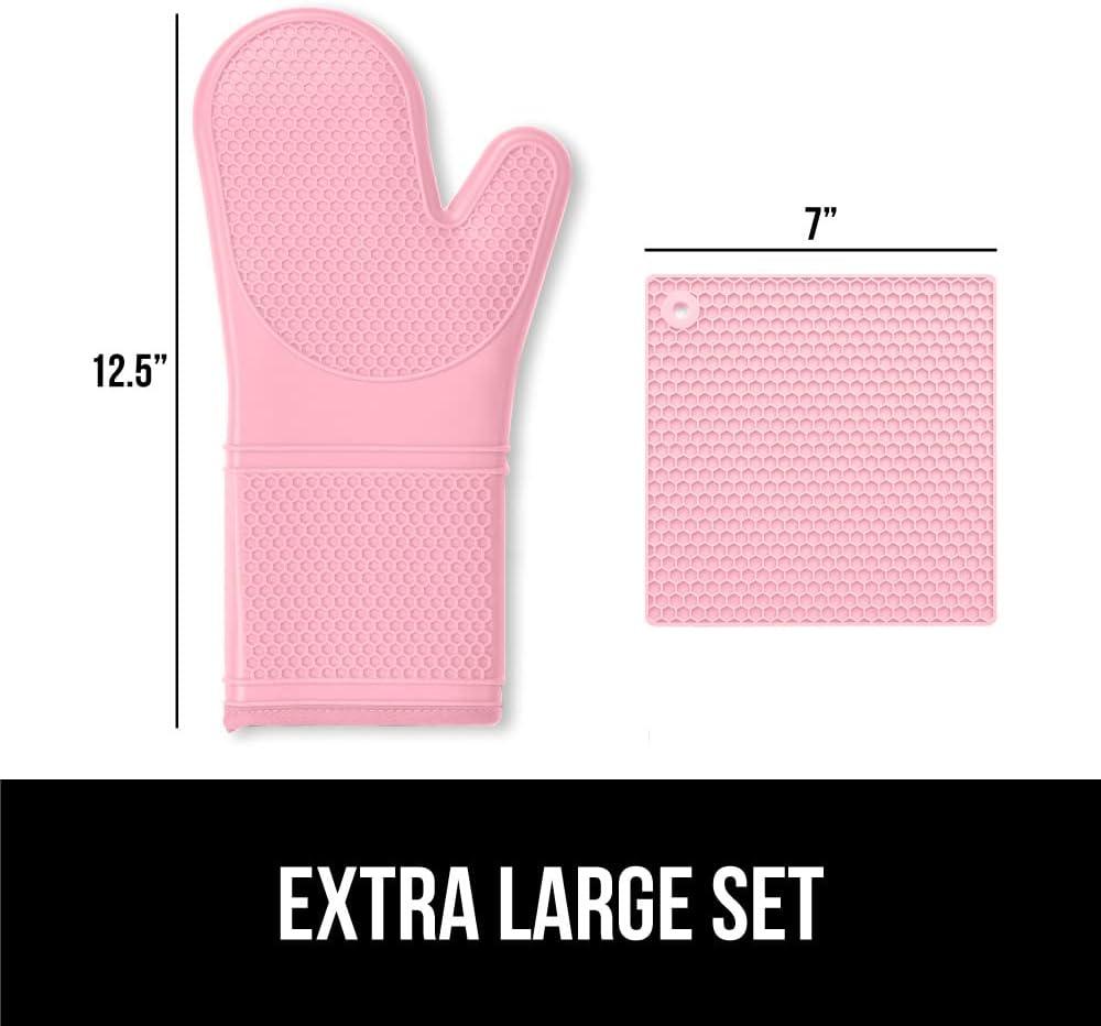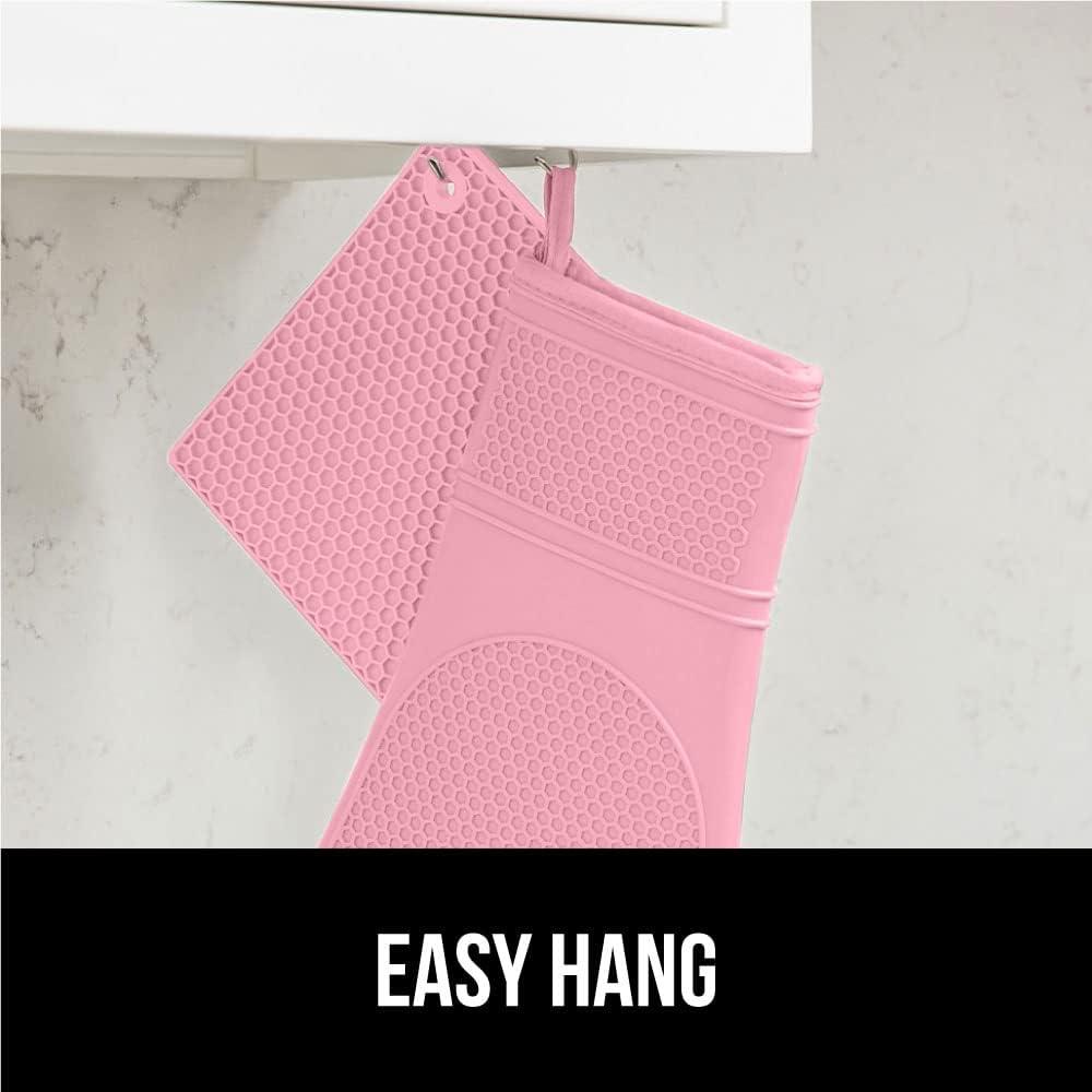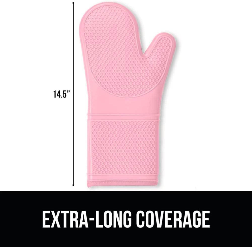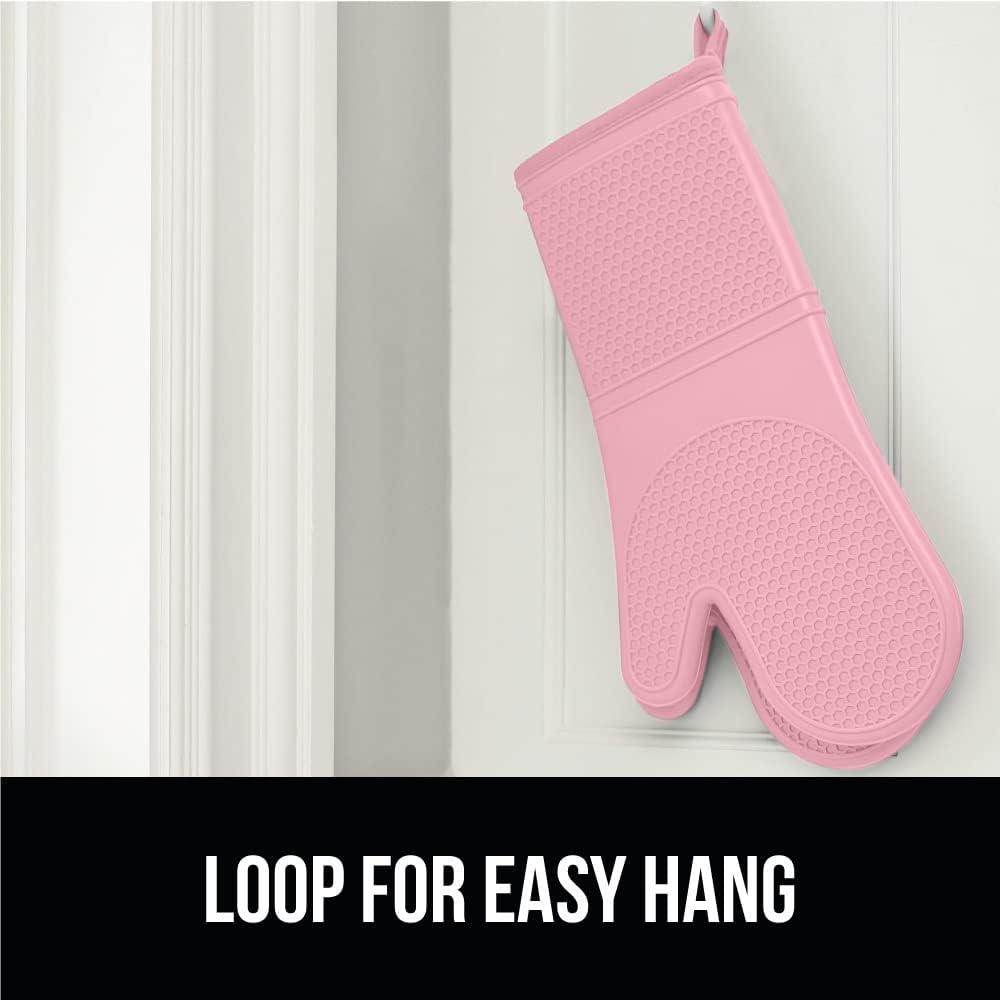 GORILLA GRIP BPA-Free Soft Silicone Oven Mitts, Heat Resistant and Waterproof Cooking Gloves, Thick Cotton Lining, Flexible Gripping for Baking Grilling, Kitchen Potholders Set of 2, 12.5x8.3, White(Pink)