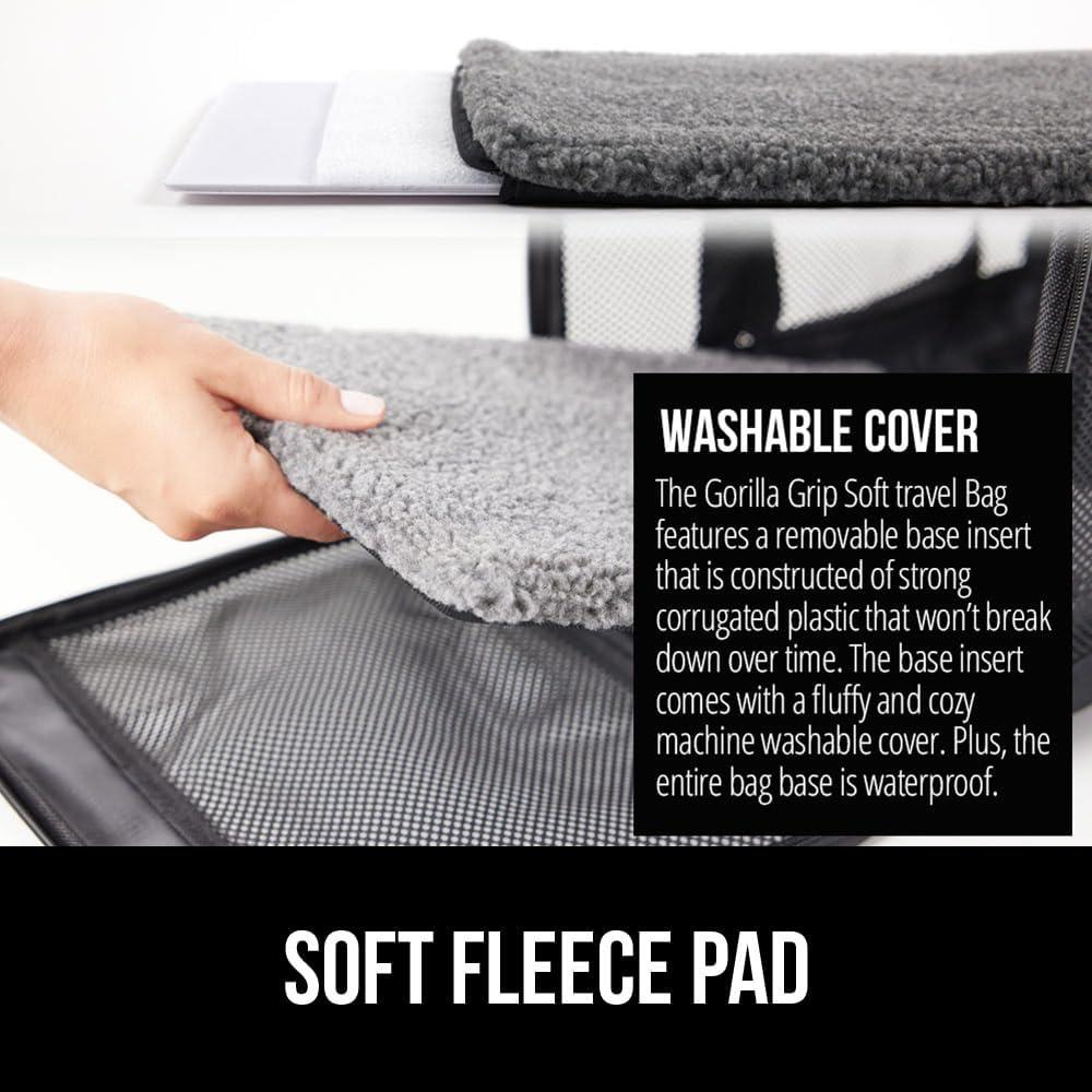 WATERPROOF BOTTOM AND WASHABLE FLEECE PAD INSERT: unlike other brands with a cardboard base, our padded insert is made from durable corrugated plastic; insert features a plush topside cover that is removable and machine washable; insert attaches to floor of the carrier with a hook and loop fastener to help keep it in place