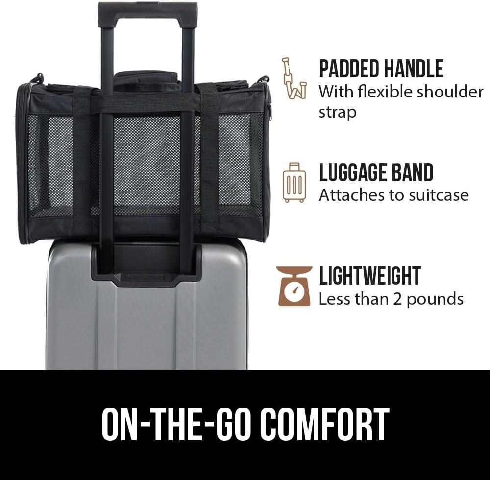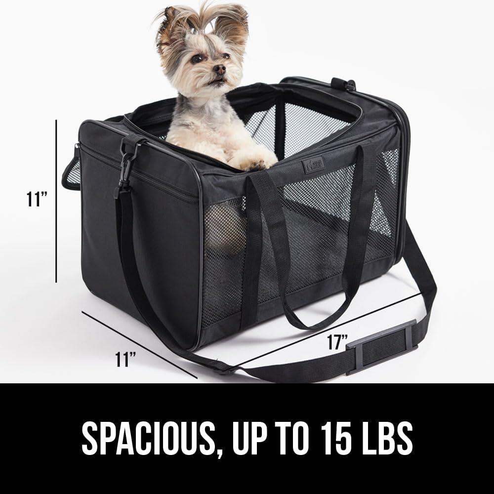 FITS MOST PLANES, HOW TO MEASURE YOUR PET: to ensure your pet fits the bag, measure from their chest to their tail, and from the floor to the top of your pet’s back; bag measures 17x11x11 inches; max weight of 15 pounds; bag’s compact size fits most planes; check with airline to ensure bag fits before travel