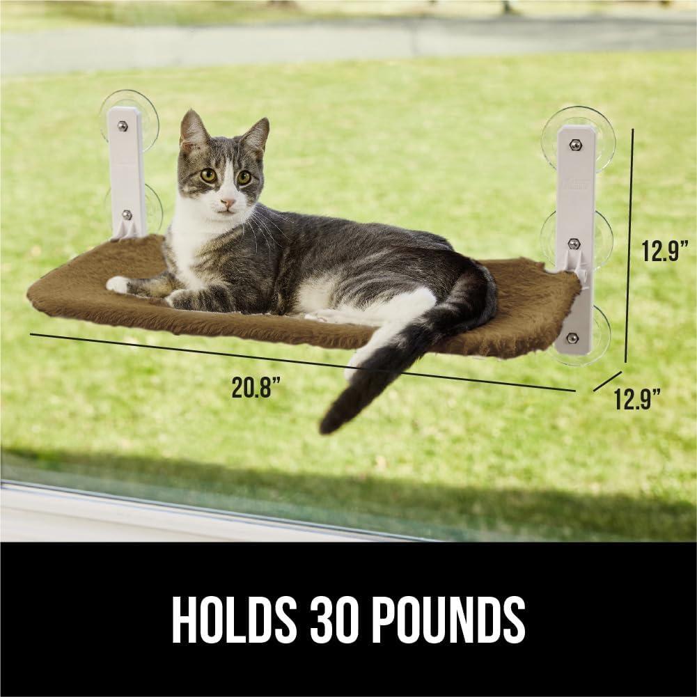 GORILLA GRIP Cat Window Perch, Foldable Cat Window Hammock Bed with 6 Large Suction Cups, Cordless Indoor Wall Shelves, Strong Metal Frame Holds 40lbs, Reversible Washable Sherpa Cover, Large Gray(Brown)
