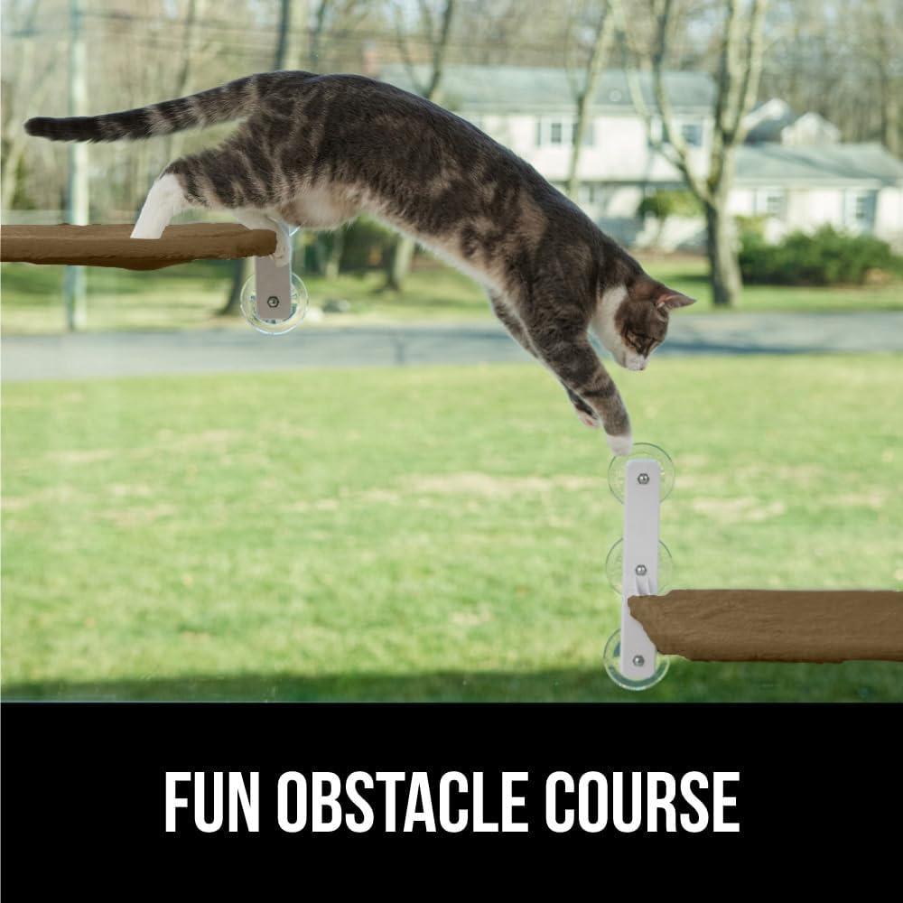 6 POWERFUL SUCTION GRIP CUPS AND METAL FRAME: unlike other brands with only 4 suction cups, our cat perch is uniquely designed with 6 large and extra strong cups for a secure hold; cups grip to clean windows; sturdy metal frame is lightweight yet durable and supportive