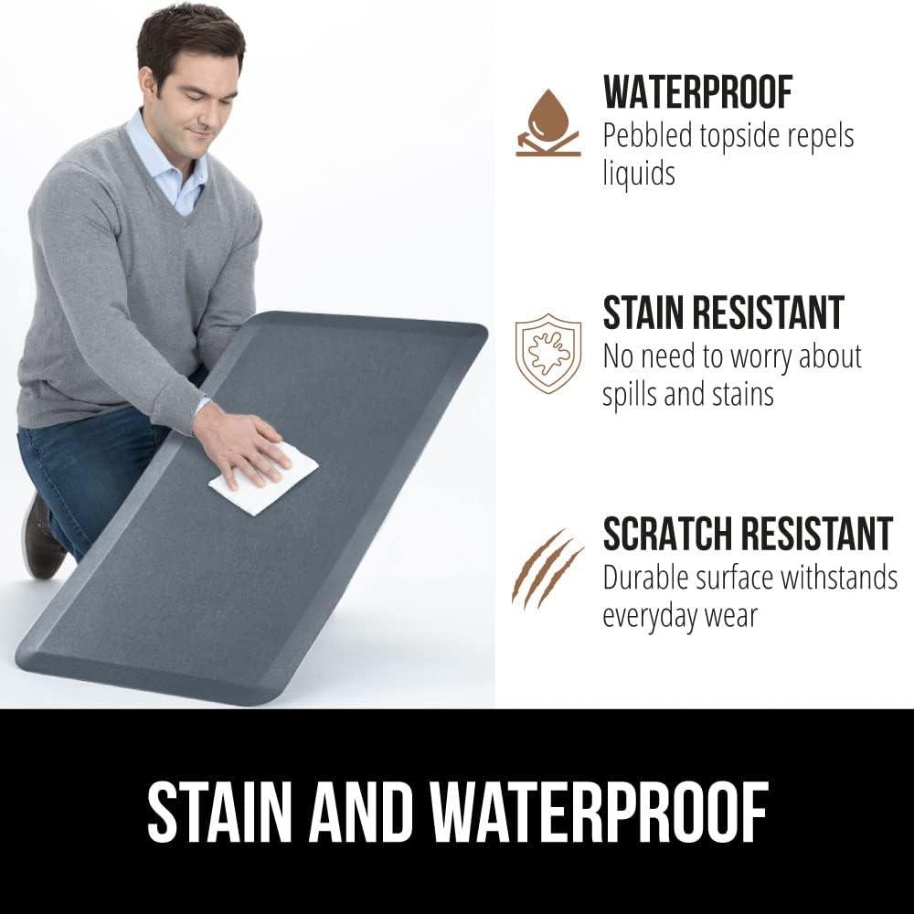 imageGORILLA GRIP Comfortable Cushioned Kitchen Mats for Floor 39x20 Waterproof and Stain Resistant Soft Top 34 Inch Thick Ergonomic Standing Desk Anti Fatigue Mat Foam Supports Ankles and Feet BlackGrey