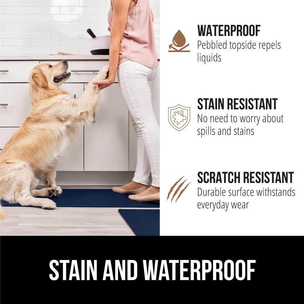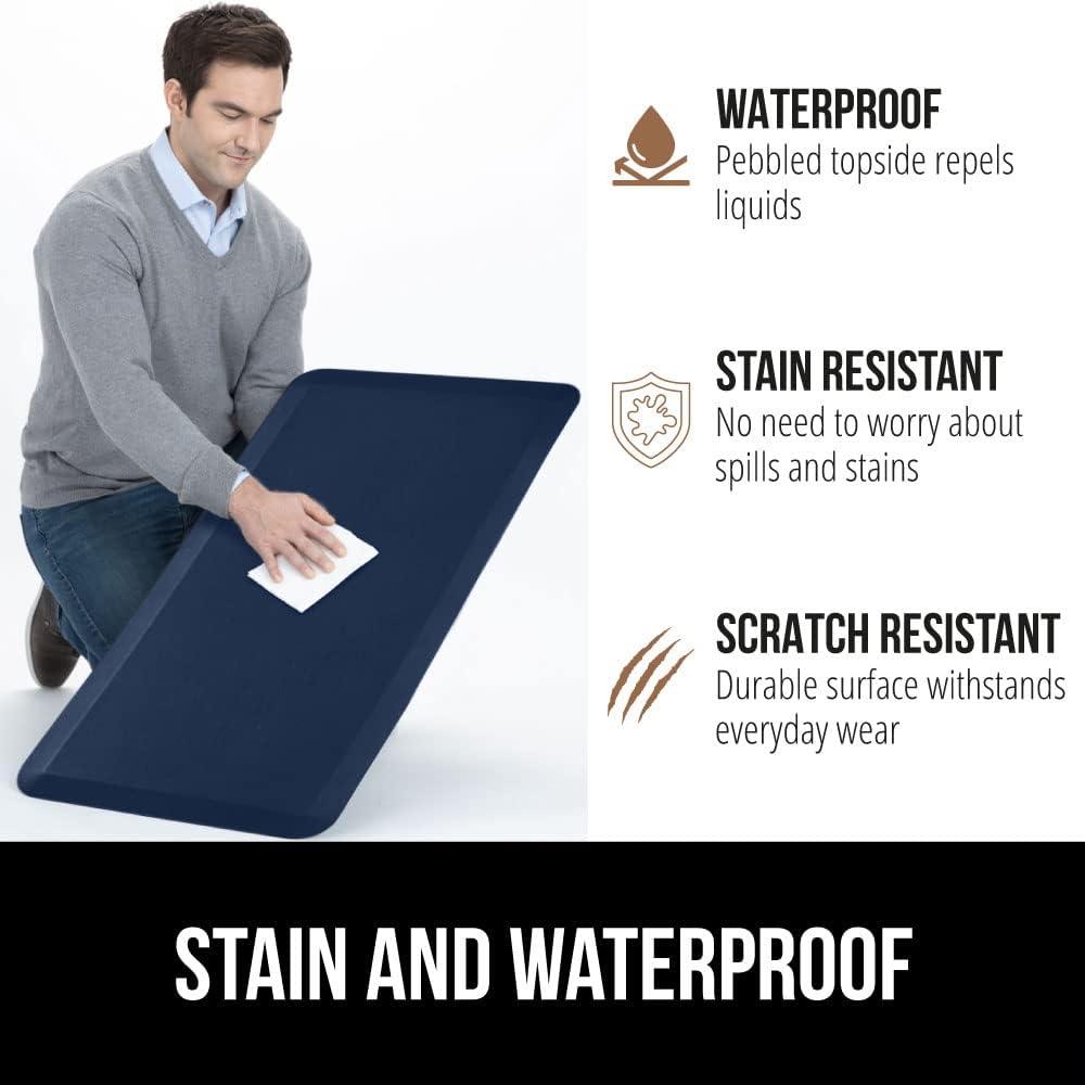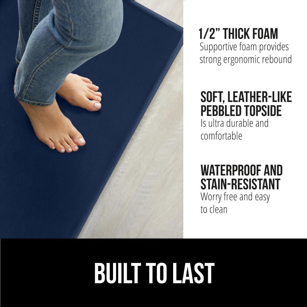 GORILLA GRIP Comfortable Cushioned Kitchen Mats for Floor, 39x20, Waterproof and Stain Resistant Soft Top, 3/4 Inch Thick Ergonomic Standing Desk Anti Fatigue Mat, Foam Supports Ankles and Feet, Black(Navy)