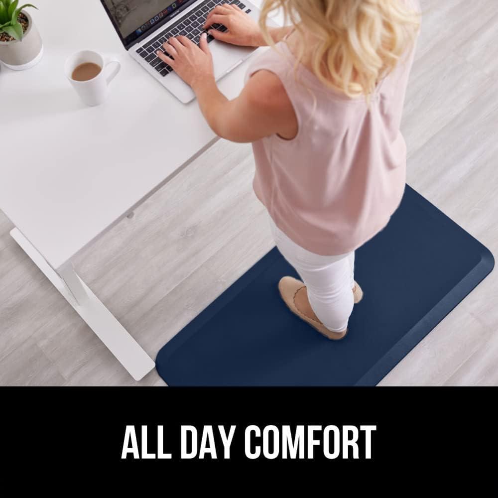 imageGORILLA GRIP Comfortable Cushioned Kitchen Mats for Floor 39x20 Waterproof and Stain Resistant Soft Top 34 Inch Thick Ergonomic Standing Desk Anti Fatigue Mat Foam Supports Ankles and Feet BlackNavy