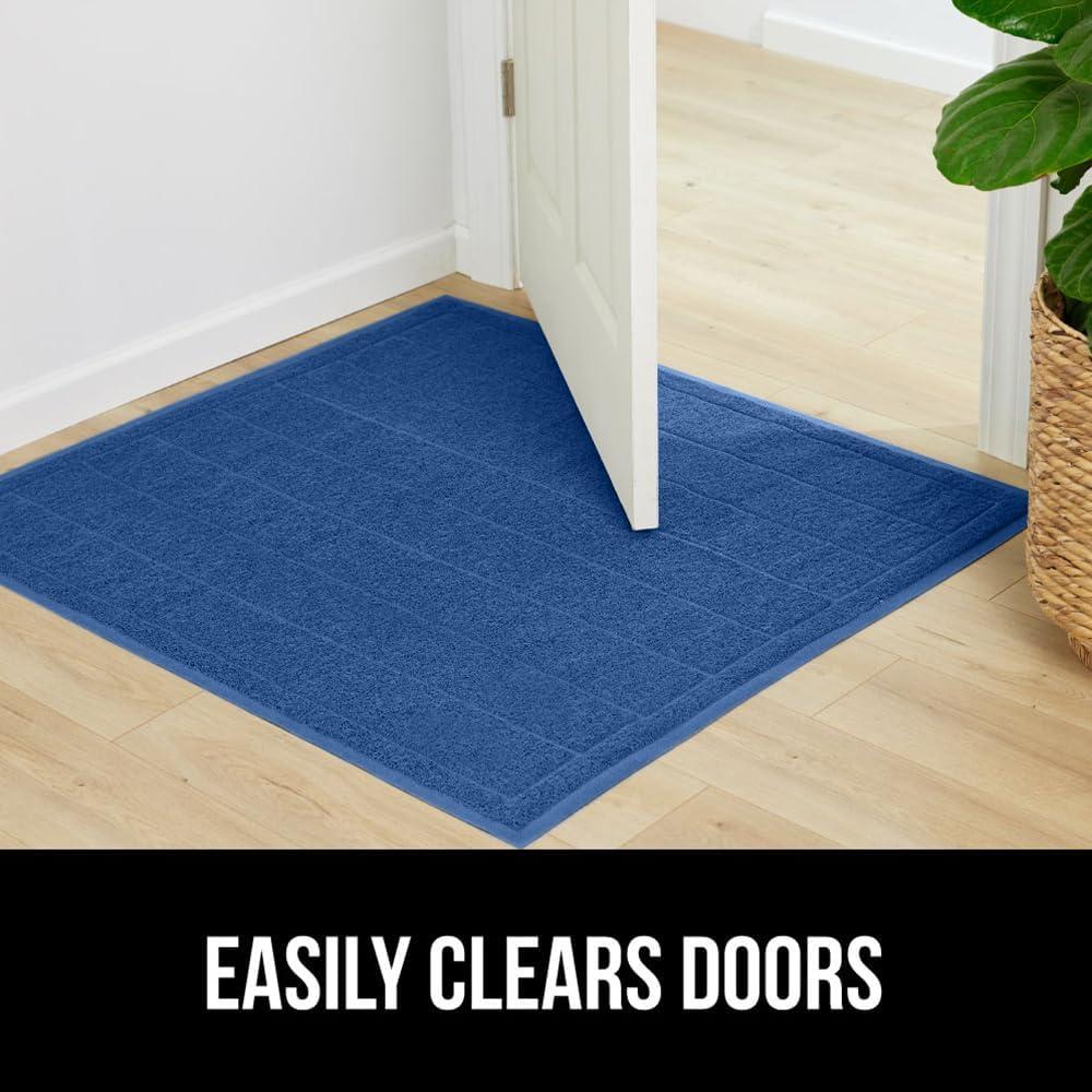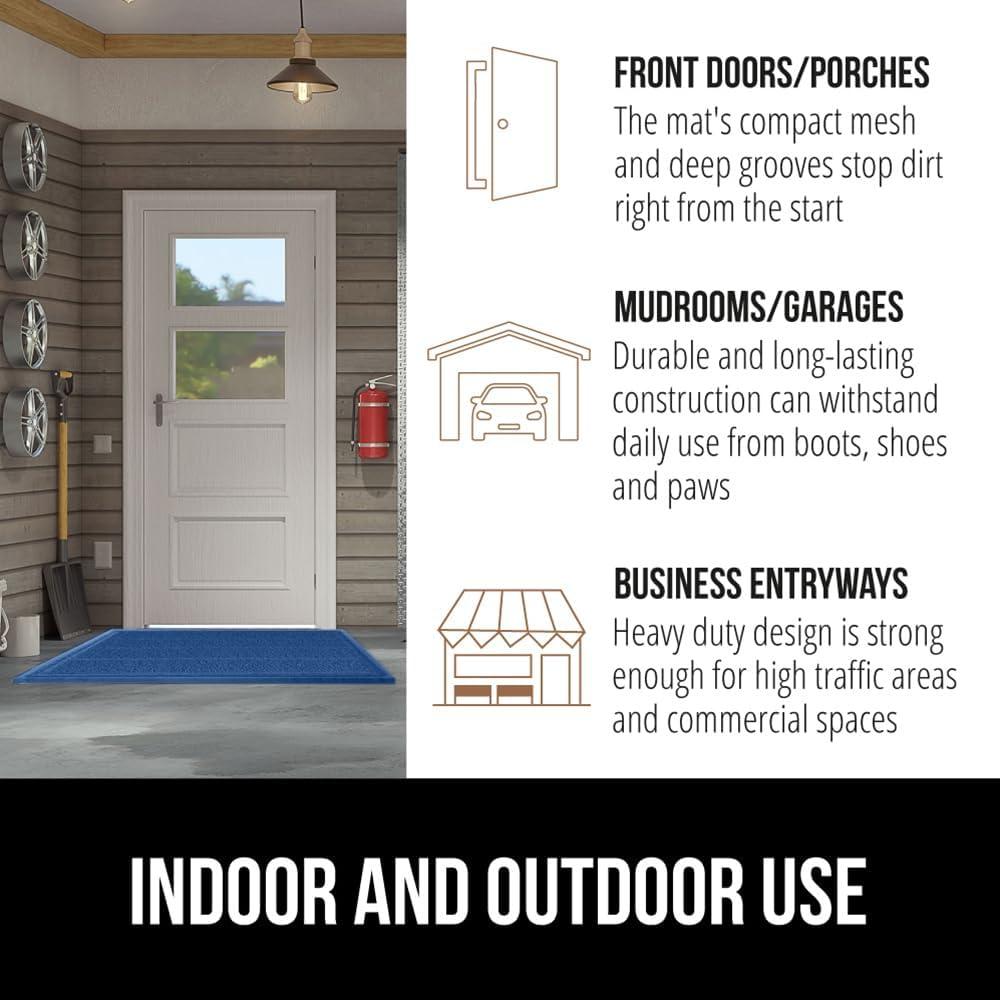 GORILLA GRIP Dirt Grabber Mesh Doormat, Low-Profile, Stain and Fade Resistant Heavy Duty Quick Dry Striped Doormats, Mats for Indoor or Outdoor Entry, Shoe Scraper, Garage Entrance Mat 47x35 Dark Gray(Blue)