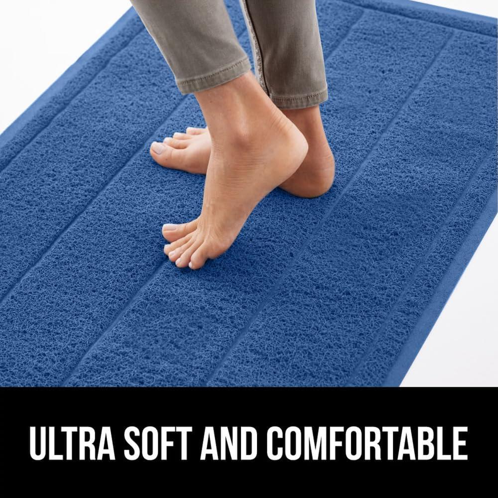 GORILLA GRIP Dirt Grabber Mesh Doormat, Low-Profile, Stain and Fade Resistant Heavy Duty Quick Dry Striped Doormats, Mats for Indoor or Outdoor Entry, Shoe Scraper, Garage Entrance Mat 47×35 Dark Gray(Blue)