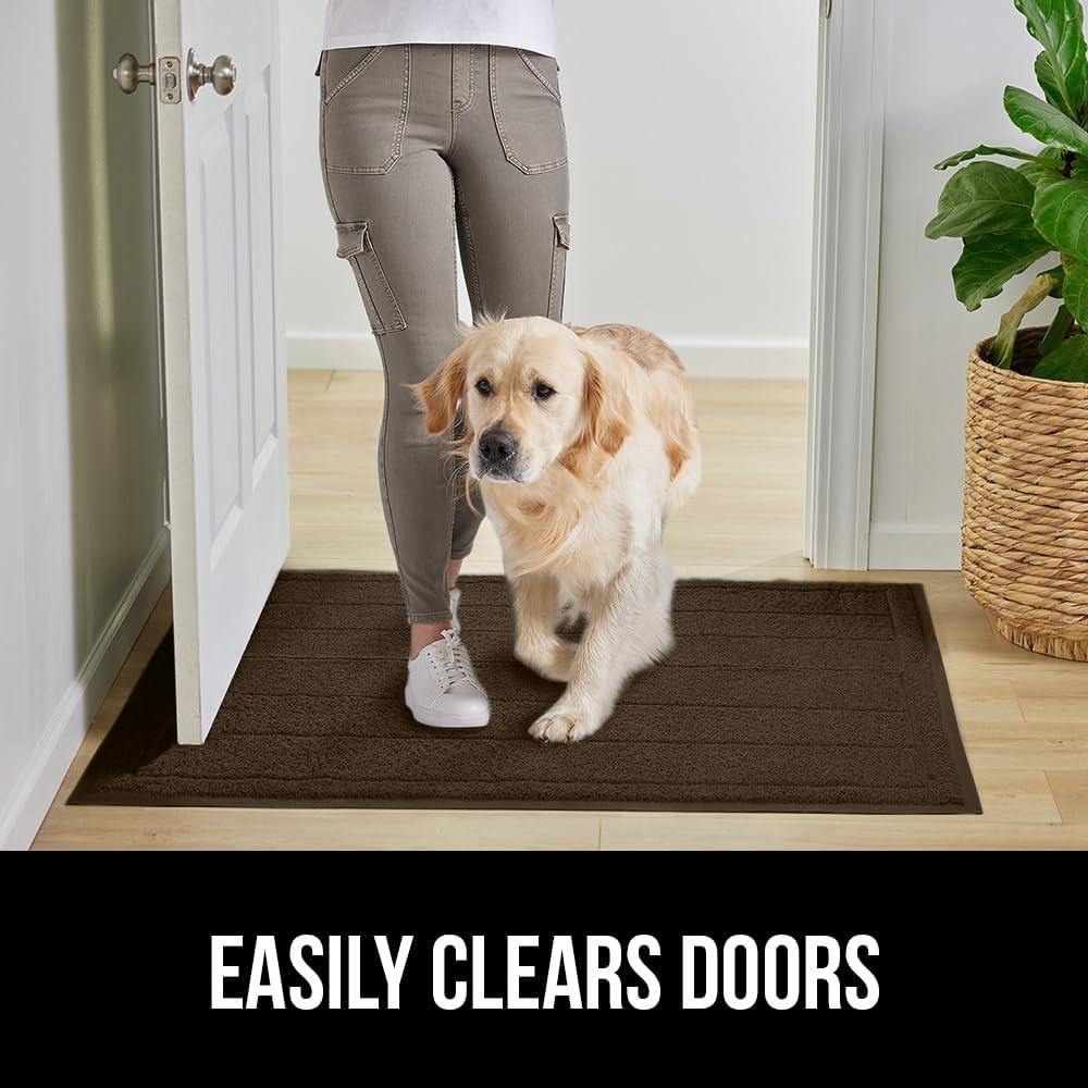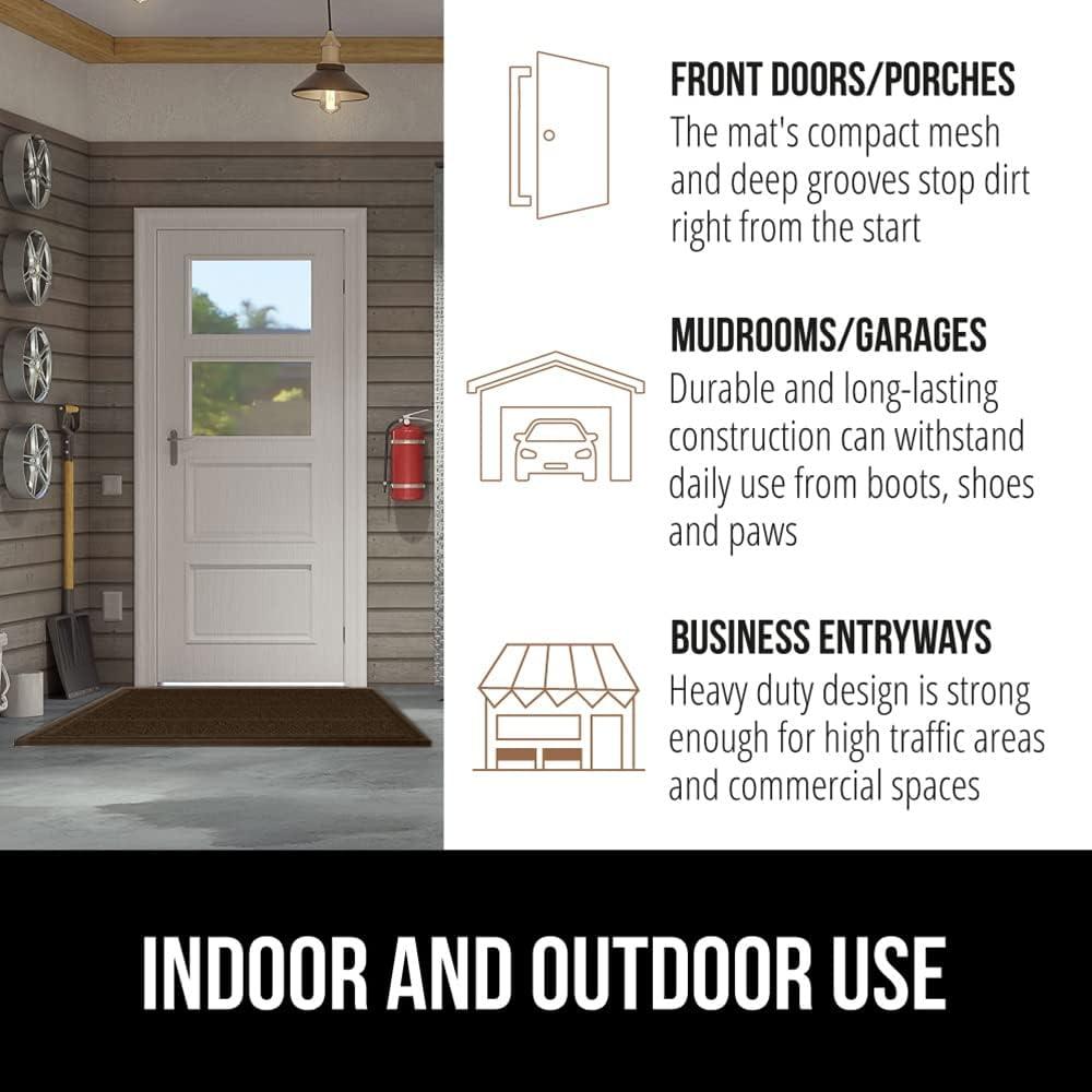 GORILLA GRIP Dirt Grabber Mesh Doormat, Low-Profile, Stain and Fade Resistant Heavy Duty Quick Dry Striped Doormats, Mats for Indoor or Outdoor Entry, Shoe Scraper, Garage Entrance Mat 47x35 Dark Gray(Brown)