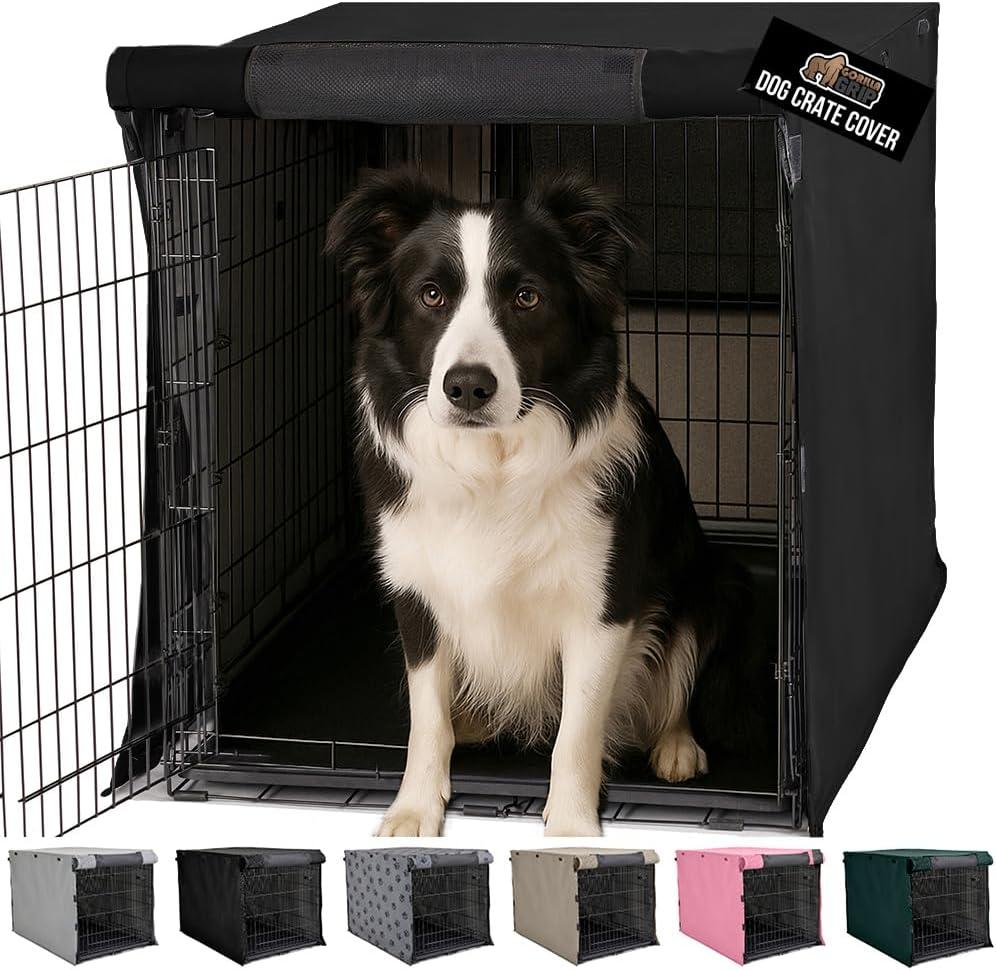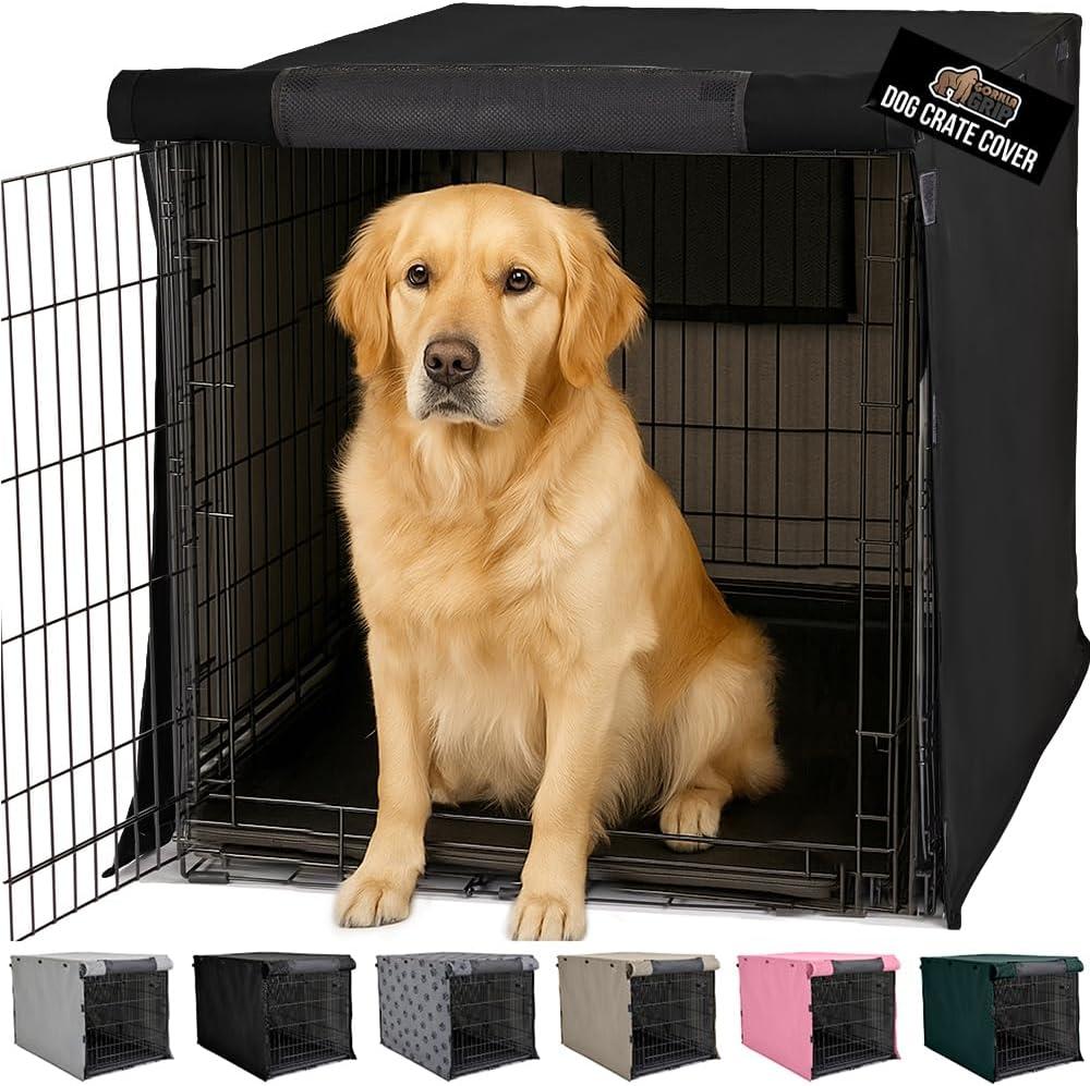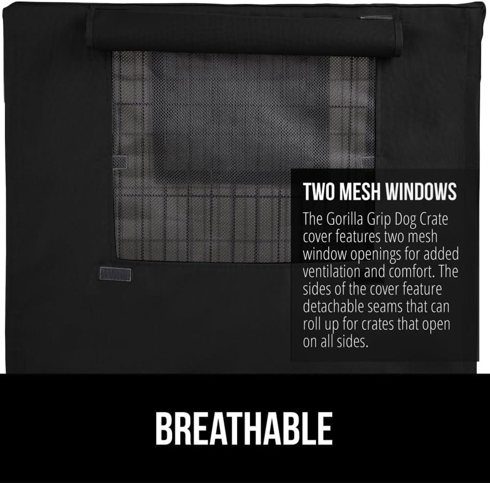 GORILLA GRIP Dog Crate Covers Compatible with Amazon Basics Dog Crates, All Sides Open, Privacy Cover Fits 36″ Wire Kennel, Breathable Mesh Windows, Light Reducing Puppy Training Cage Topper, Black(Black)