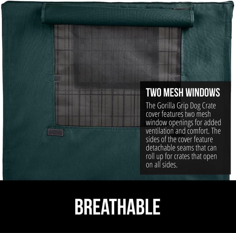 imageGORILLA GRIP Dog Crate Covers Compatible with Amazon Basics Dog Crates All Sides Open Privacy Cover Fits 36quot Wire Kennel Breathable Mesh Windows Light Reducing Puppy Training Cage Topper BlackHunter Green