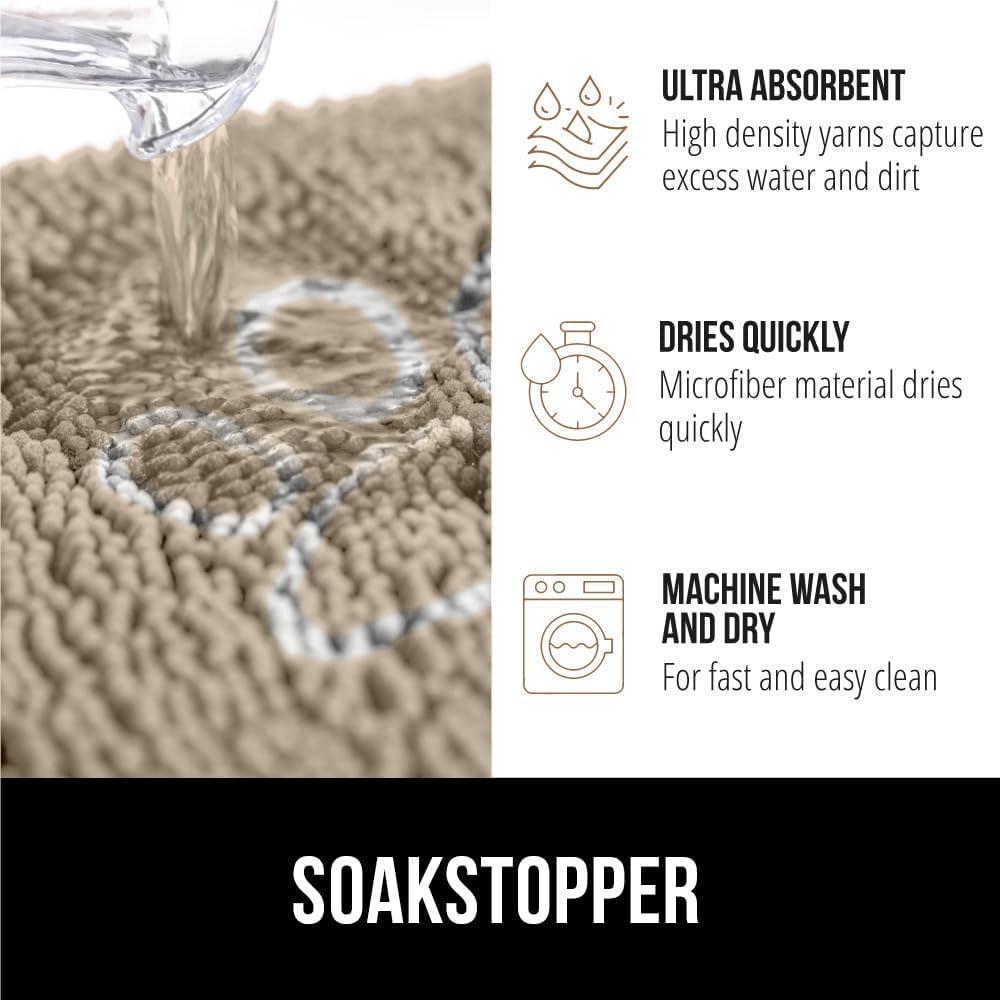SOAK STOPPER from GORILLA GRIP: the original Gorilla Grip Soak Stopper mat is highly absorbent, featuring an extra-absorbent top layer, its dense chenille pile absorbs excess moisture, helping to keep floors clean from the toughest messes