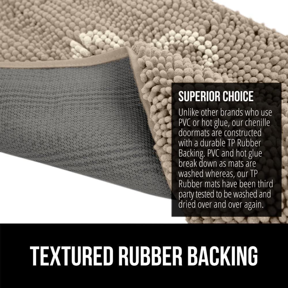 SOFT CHENILLE MICROFIBER DRIES QUICKLY: thick, plush pile is soft and cozy underfoot. Our doormats are OEKO-TEX Standard 100 certified, tested for harmful substances, and feature ultra-absorbent microfiber that dries quickly