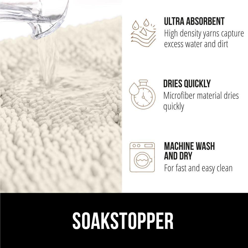SOAK STOPPER from GORILLA GRIP: the original Gorilla Grip Soak Stopper mat is highly absorbent, featuring an extra-absorbent top layer, its dense chenille pile absorbs excess moisture, helping to keep floors clean from the toughest messes