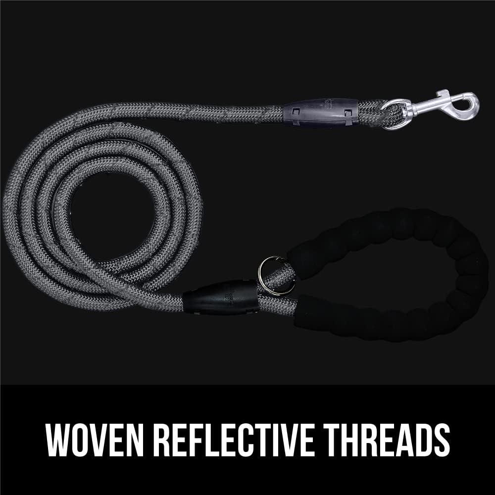 imageGORILLA GRIP Dog Leash Heavy Duty Reflective Rope Leashes for Large Medium Small Breed Dogs Puppy Training Essential for Walks Hikes Soft Handle Rotating Metal Clip Waste Bag Dispenser BlackGray