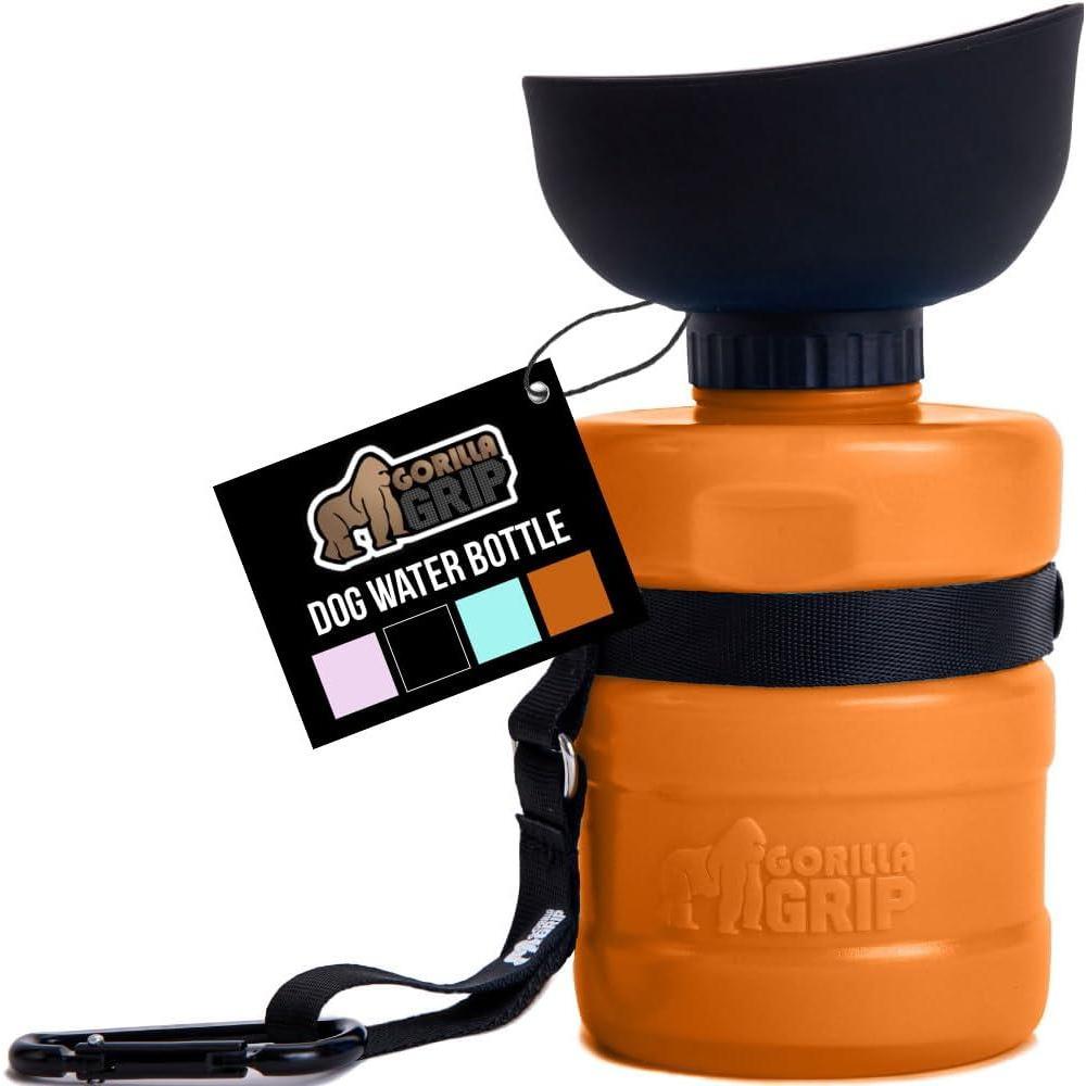 imageGORILLA GRIP Dog Water Bottle Portable Water Bowl Dispenser for Dogs 12 oz Leak Proof Pet Travel Squeeze Bottles Food Grade Silicone to Go Puppy Essentials Hiking Camping Trip Accessories BlackOrange