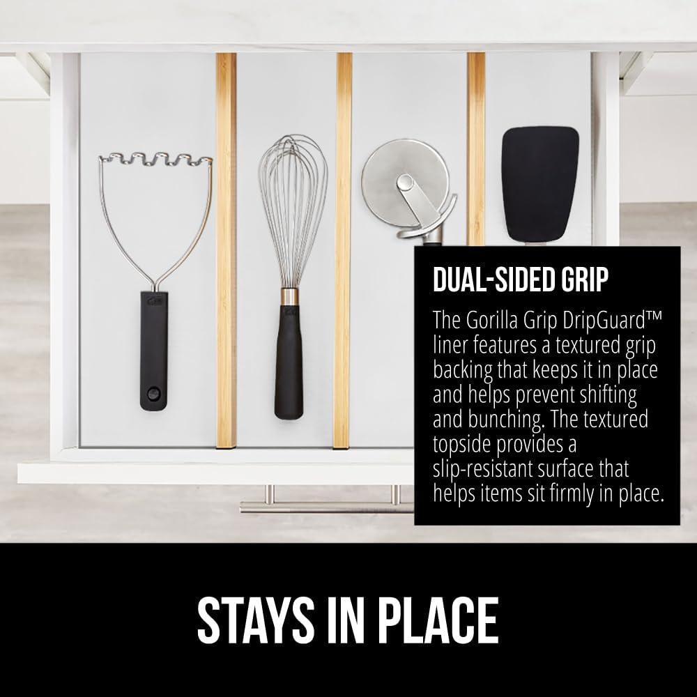 GORILLA GRIP DripGuard Drawer and Shelf Liner for Cabinet, Slip Resistant Non Adhesive Protection for Kitchen, BPA Free Smooth Surface Plastic Liners for Cabinets, Bathroom Drawers, 12x120 Inch, White(White)