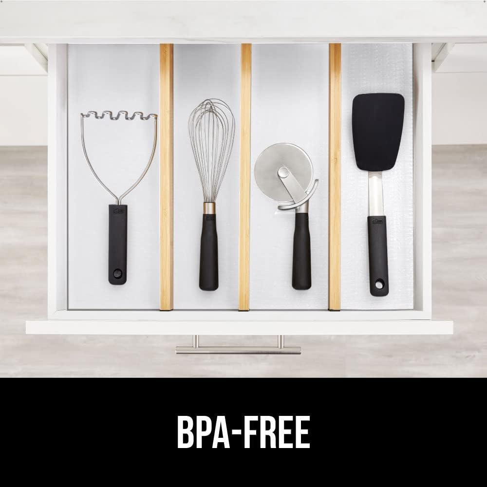 imageGORILLA GRIP DripGuard Drawer and Shelf Liner for Cabinet Slip Resistant Non Adhesive Protection for Kitchen BPA Free Smooth Surface Plastic Liners for Cabinets Bathroom Drawers 12x120 Inch WhiteWhiteGray