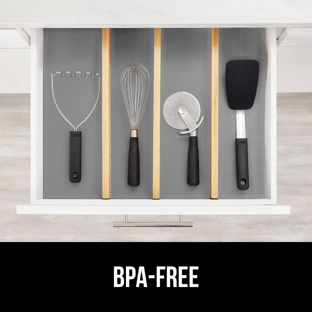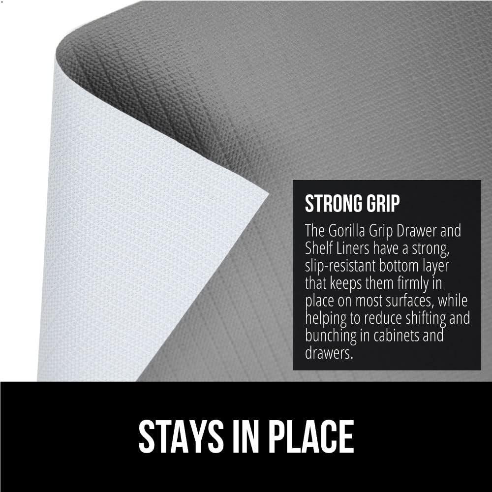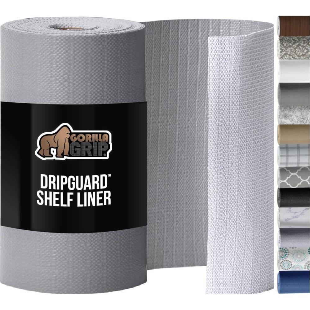 imageGORILLA GRIP DripGuard Drawer and Shelf Liner for Cabinet Slip Resistant Non Adhesive Protection for Kitchen BPA Free Smooth Surface Plastic Liners for Cabinets Bathroom Drawers 12x120 Inch WhiteGray