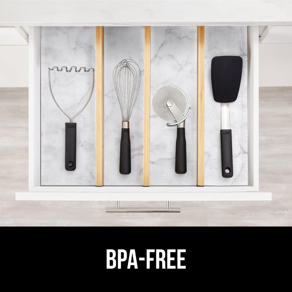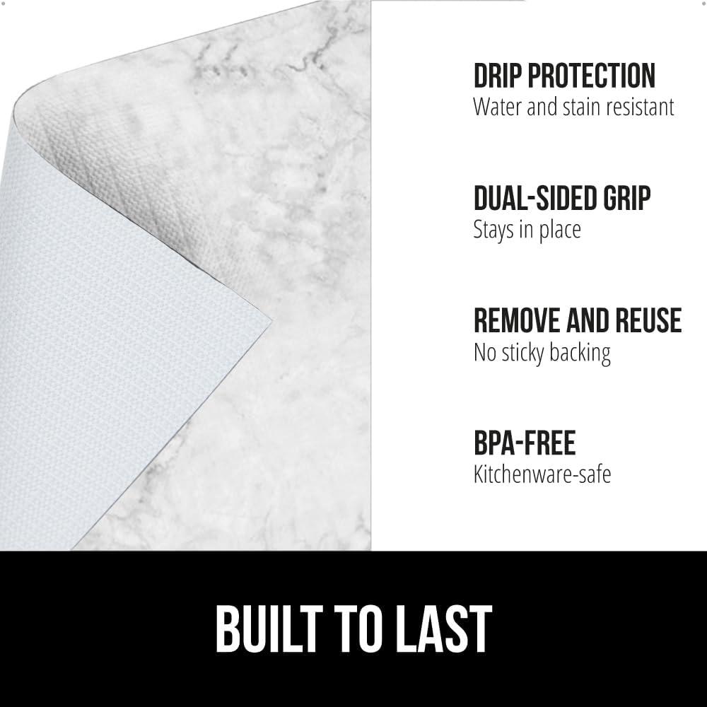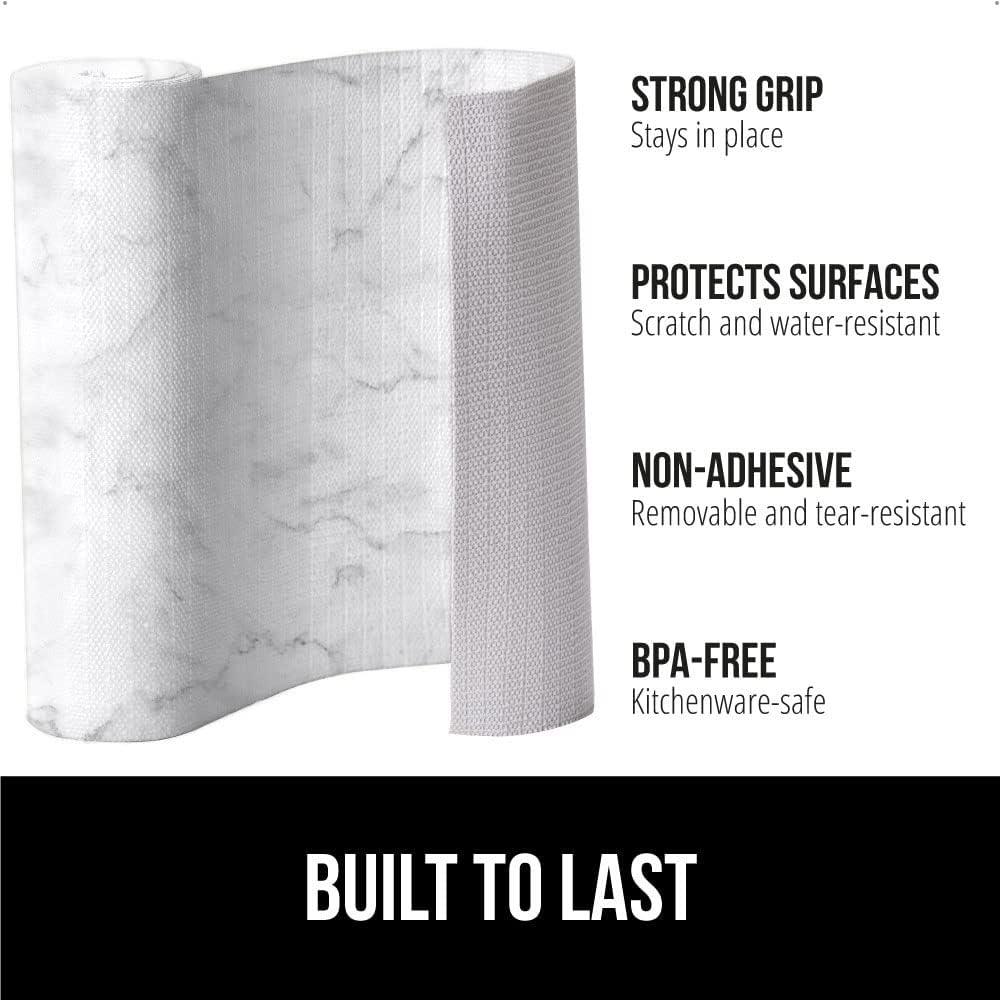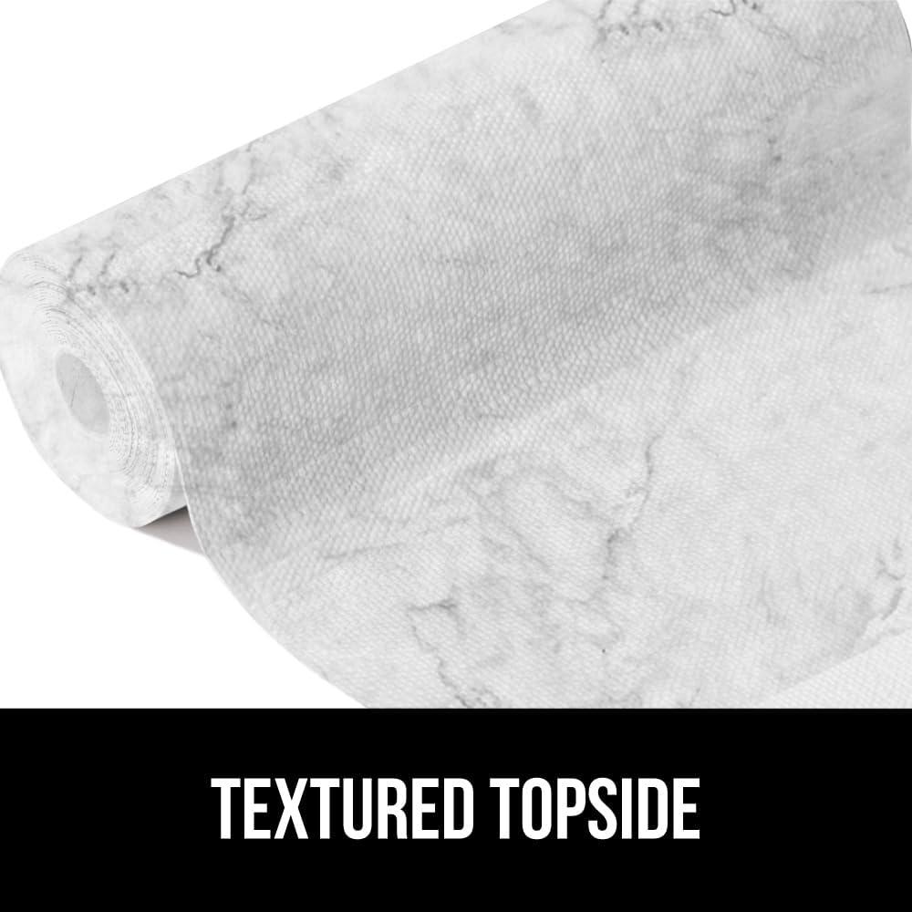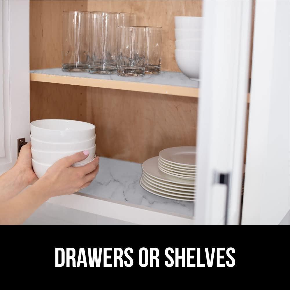GORILLA GRIP DripGuard Drawer and Shelf Liner for Cabinet, Slip Resistant Non Adhesive Protection for Kitchen, BPA Free Smooth Surface Plastic Liners for Cabinets, Bathroom Drawers, 12x120 Inch, White(Marble)