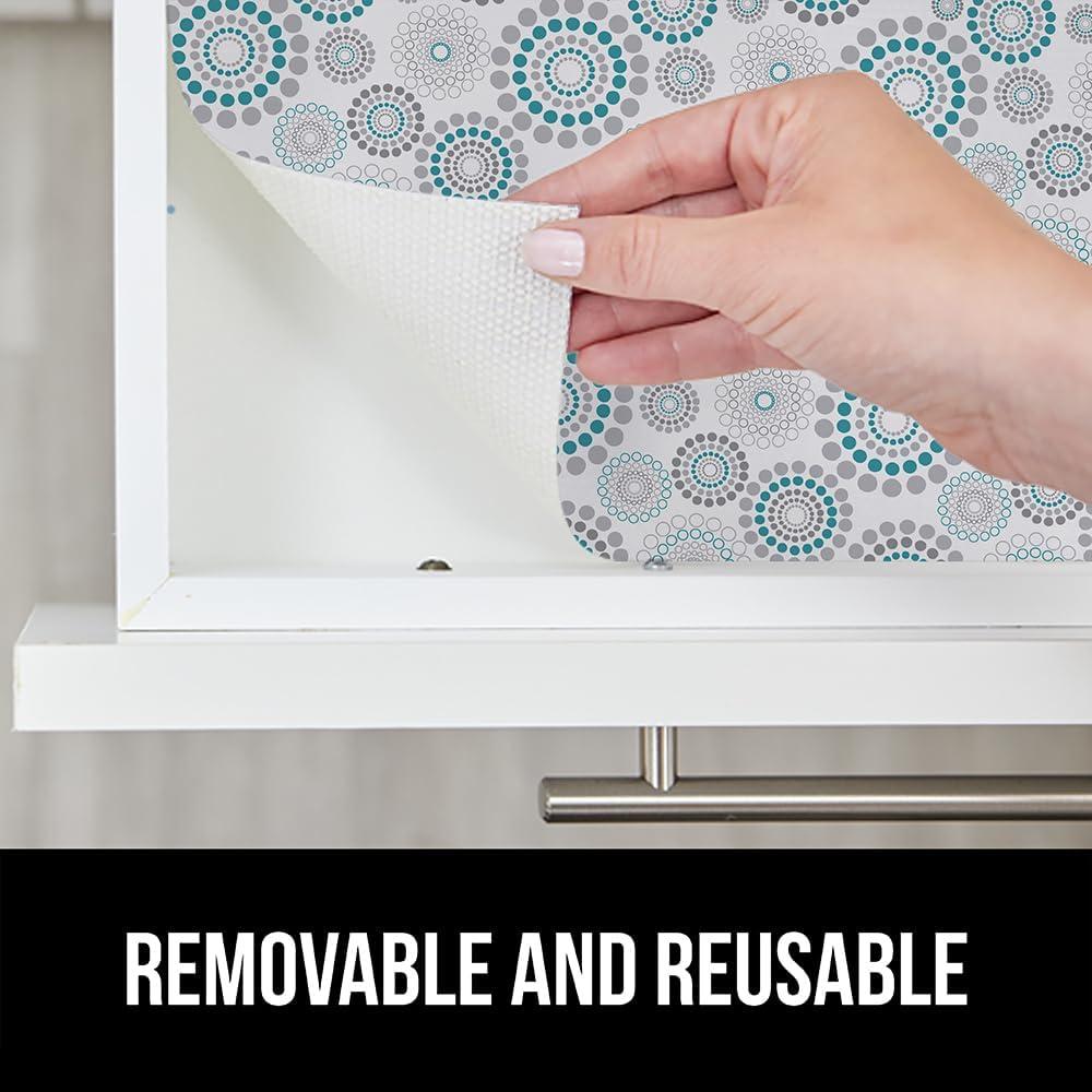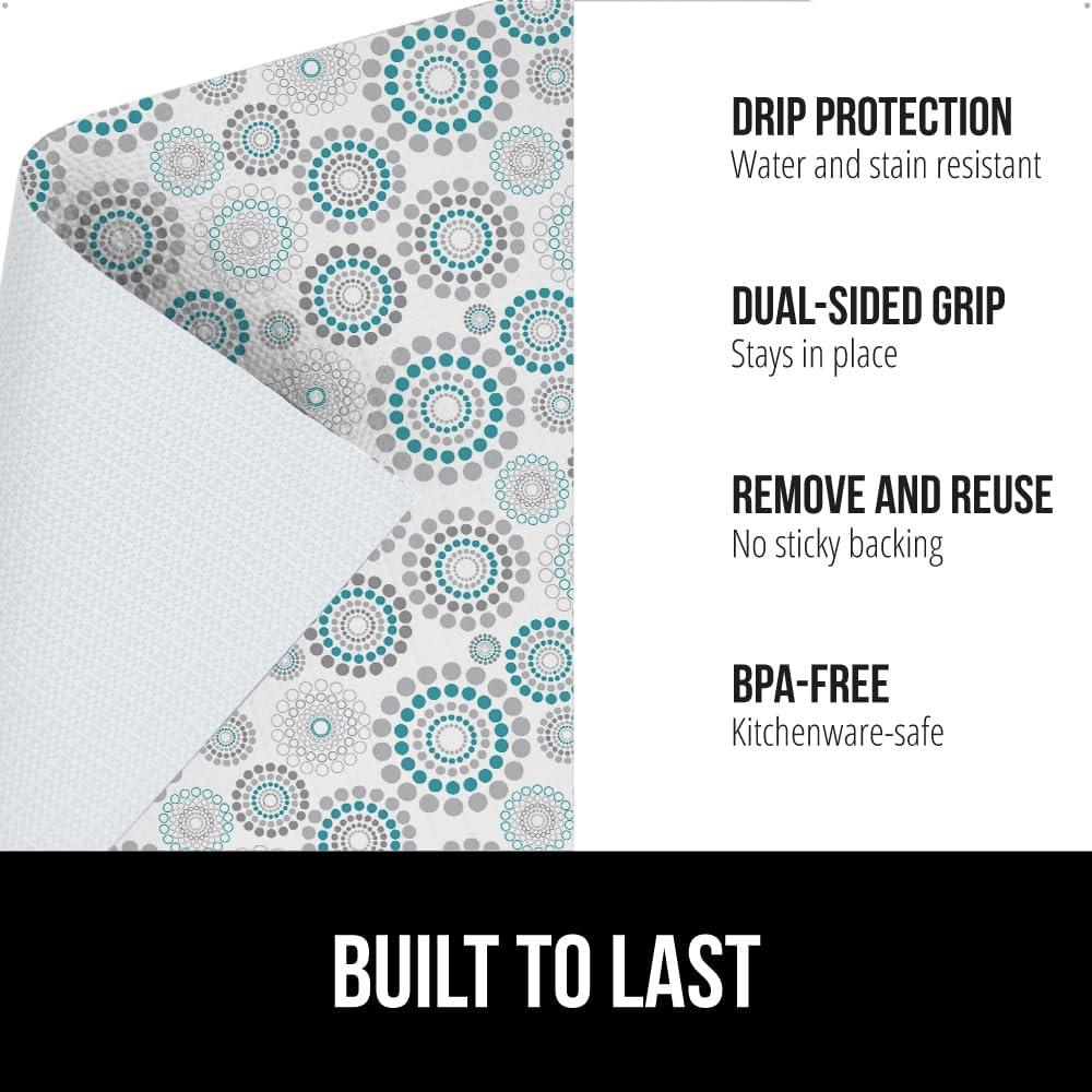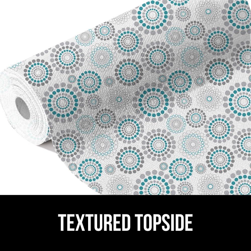 GORILLA GRIP DripGuard Drawer and Shelf Liner for Cabinet, Slip Resistant Non Adhesive Protection for Kitchen, BPA Free Smooth Surface Plastic Liners for Cabinets, Bathroom Drawers, 12x120 Inch, White(Spiral Gray Turquoise White)