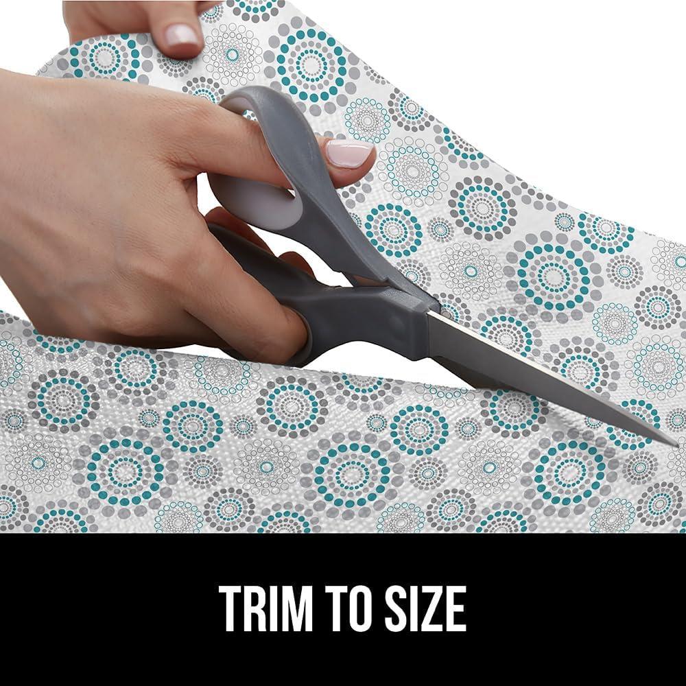 imageGORILLA GRIP DripGuard Drawer and Shelf Liner for Cabinet Slip Resistant Non Adhesive Protection for Kitchen BPA Free Smooth Surface Plastic Liners for Cabinets Bathroom Drawers 12x120 Inch WhiteSpiral Gray Turquoise White