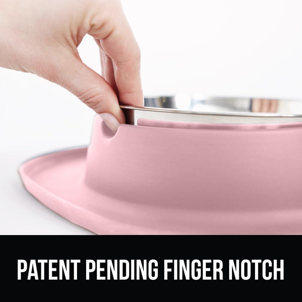 BUILT TO LAST: durably designed silicone mat and stainless steel bowls are built to last; a convenient finger notch provides easy access to the dishes, making it simple to access and remove the bowls when filling with food or during cleaning