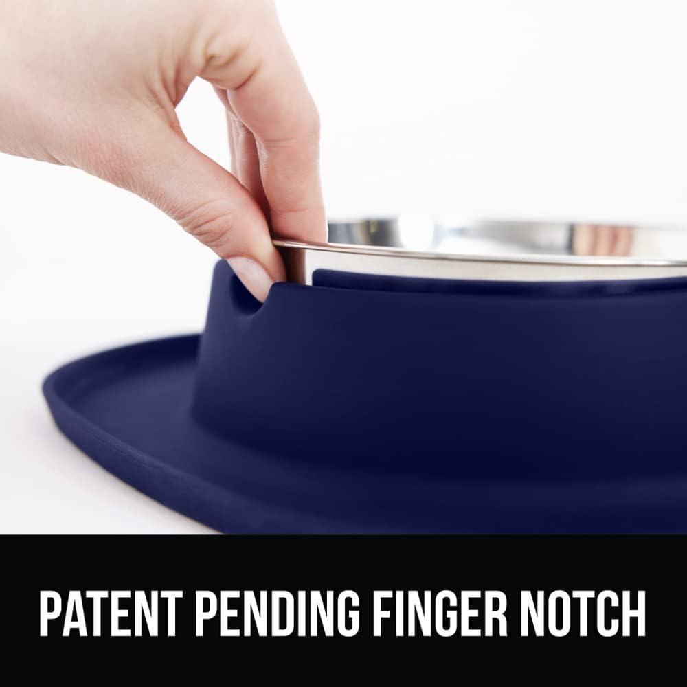BUILT TO LAST: durably designed silicone mat and stainless steel bowls are built to last; a convenient finger notch provides easy access to the dishes, making it simple to access and remove the bowls when filling with food or during cleaning
