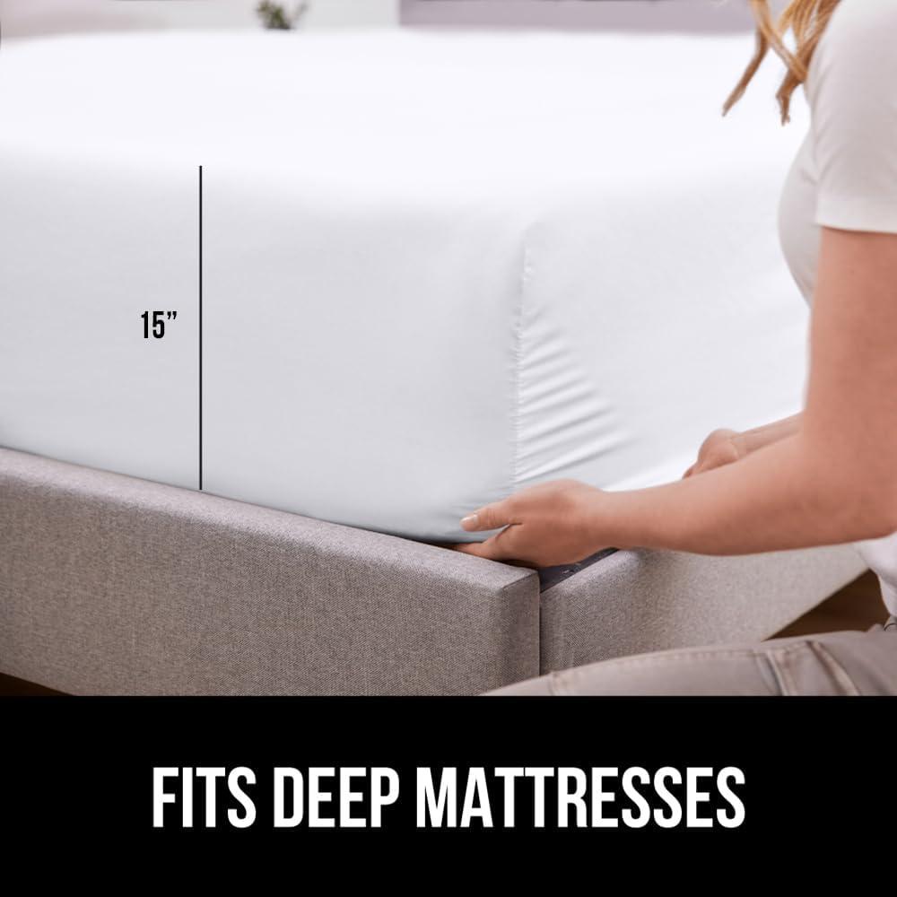imageGORILLA GRIP Fitted Sheets Stay in Place Twin Size Deep Pocket Bottom Bed Sheets for Mattress Lightweight Microfiber Sbana All Around Elastic OekoTex Wrinkle and Shrink Resistant CreamBright White