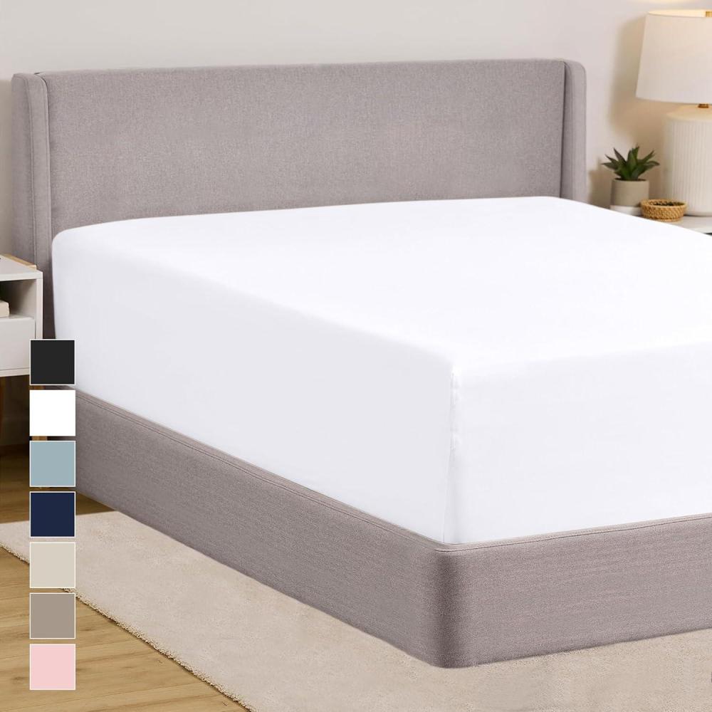 STAYS IN PLACE WITH ALL AROUND ELASTIC: featuring strong, 360 degree elastic all around the entire sheet, the fitted sheet fits securely around all four corners, keeping it in place and helping to prevent the sheet from popping up or bunching