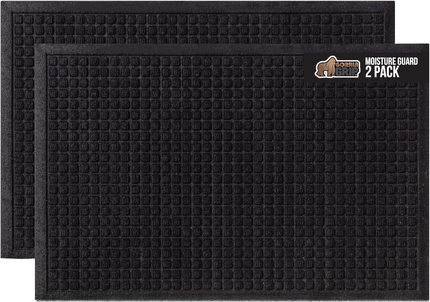 GORILLA GRIP Front Door Mat, Indoor Outdoor Ultra Absorbent Moisture Guard Doormat, Absorbs Up to 1.7 Cups of Water, Stain and Fade Resistant, Rubber Backing Doormats, Captures Dirt, 29×17 Gray(Black)