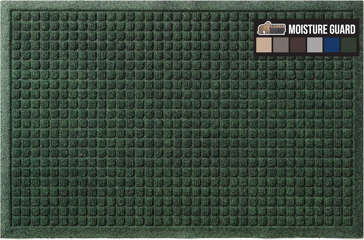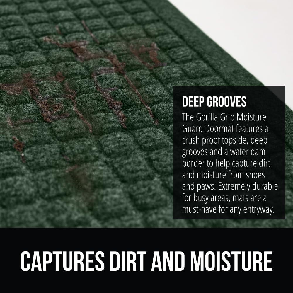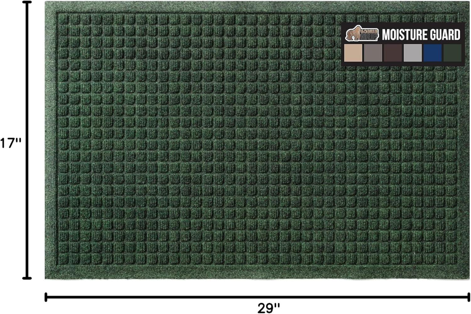 GORILLA GRIP Front Door Mat, Indoor Outdoor Ultra Absorbent Moisture Guard Doormat, Absorbs Up to 1.7 Cups of Water, Stain and Fade Resistant, Rubber Backing Doormats, Captures Dirt, 29x17 Gray(Green)