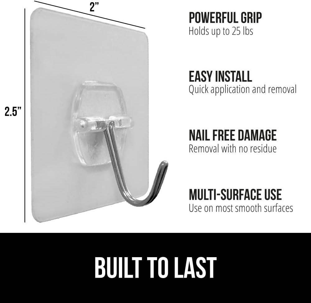 The durable hooks feature high strength grippy backing built to withstand up to 25 lbs. Unlike other hooks that break easily, our hooks are designed for long lasting performance.